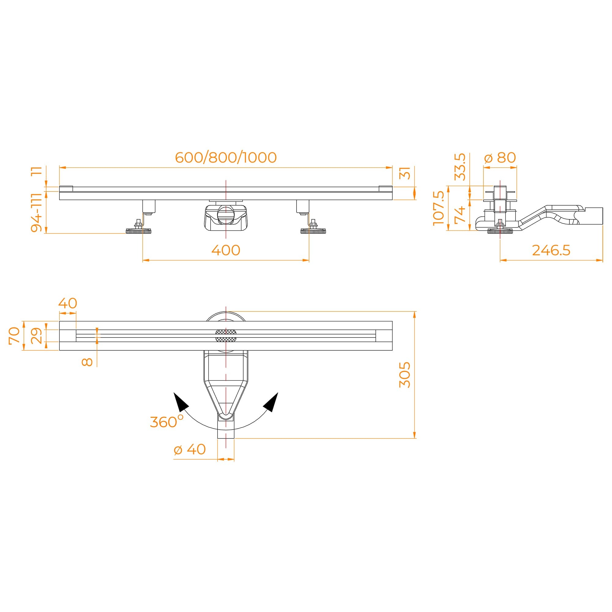 Дренажная система встраивается в пол или в подиум душевого пространства. В данном изделии поворотный сифон 360 градусов разворот. Удобен для подвода канализационной трубы в любой стороны. Дренажное оборудование сантехническое оборудование требует заранее запланировать в проекте месторасположения.