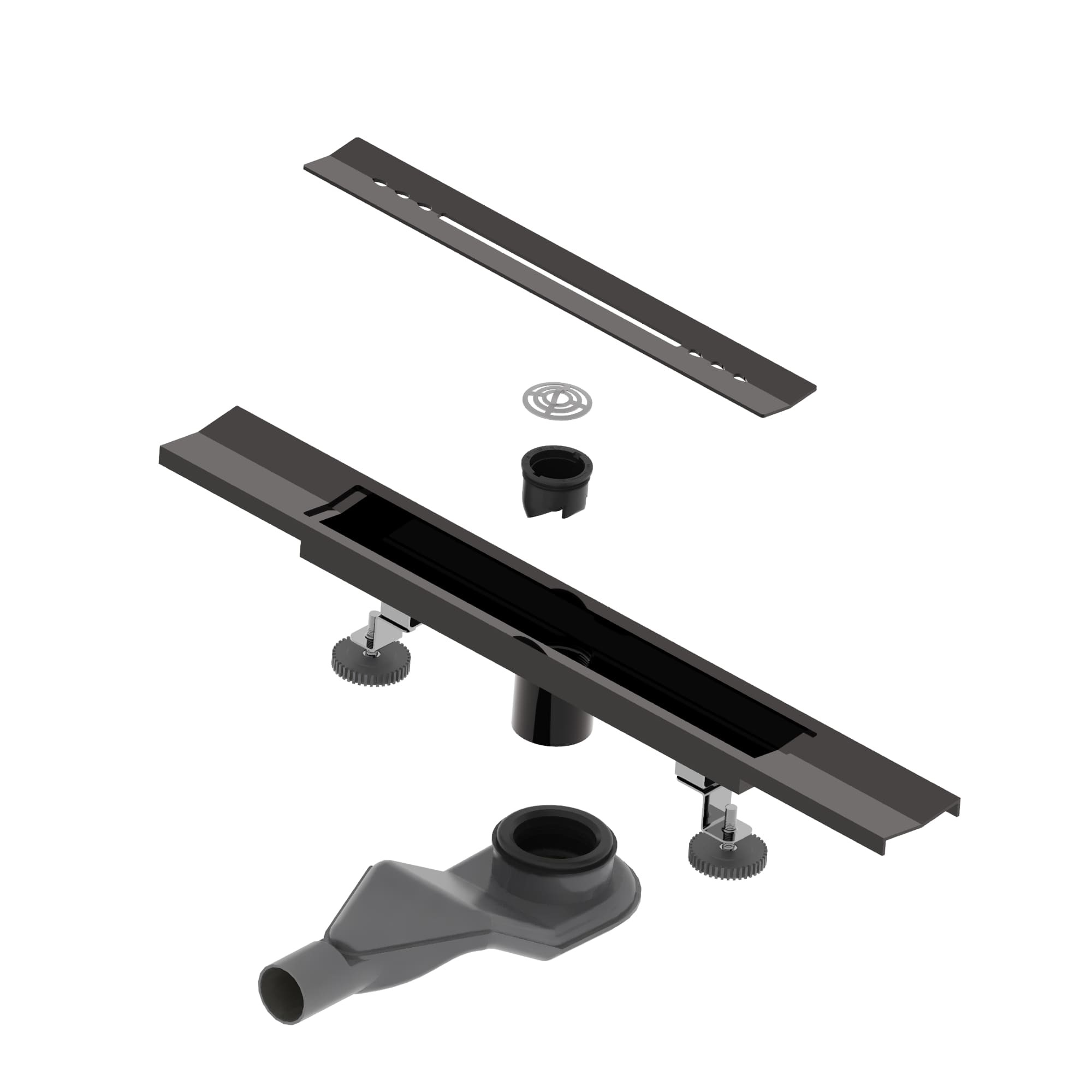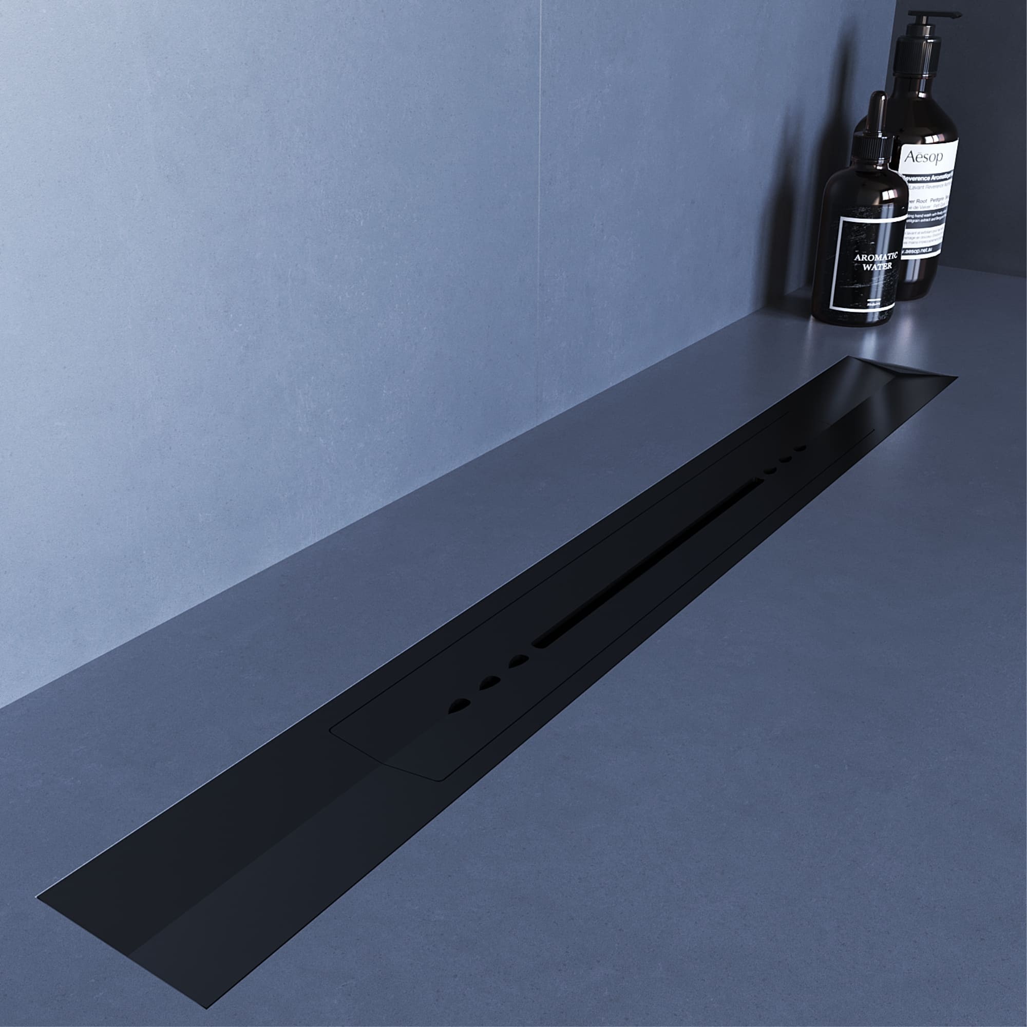 Душевой трап для душа, обрезной, черный RGW SDR-53 горизонтальный с широкой крышкой, закрывающей универсальный душевой лоток