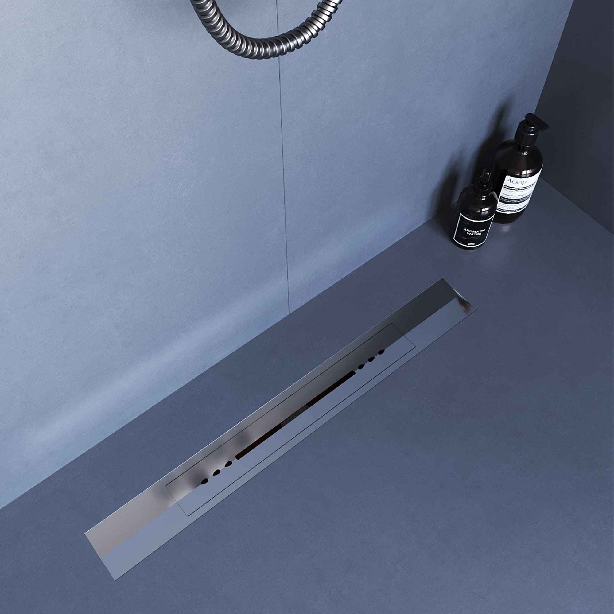 Душевой лоток комплектуется сифоном с выходом трубы диаметром на 50 мм для подключения к канализационной трубе, в данной системе переходников не требуется. Для эффективного стока воды нужно предусмотреть уклон облицовочной плитки в сторону сливного жёлоба и небольшой уклон канализационной трубы от соединения с сифоном до входа в стену. На этапе монтажа обязательно до укладки облицовочной плитки уложите вокруг лотка гидроизоляционную ленту, которым комплектуется трап. Облицовочная плитка укладывается вровень с бортами лотка.
