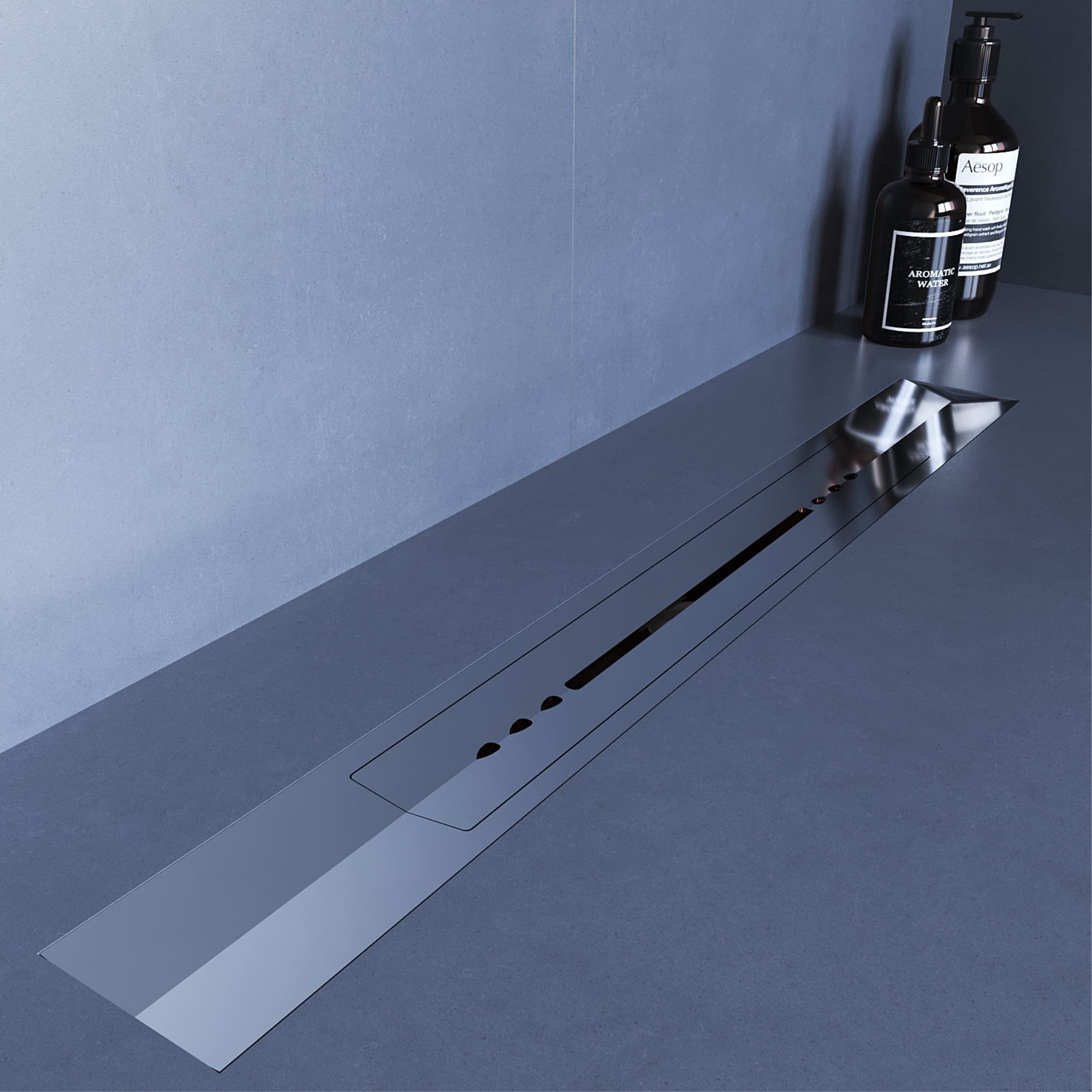 V-образный трап для душа. Мощный, с широкой крышкой 70 мм трап для душа в данном изделии - это оригинальная по дизайну инсталляция в полу для сбора воды при принятии душа, заменяющая душевой поддон. Данная модная модель лотка для сбора воды утоплена в пол. Поворотный сифон на 360 градусов позволяет легко подключиться к канализации с любой стороны. В сантехнике является уникальным вариантом среди всех широких линейных трапов, устанавливаемых при создании душевой кабины.