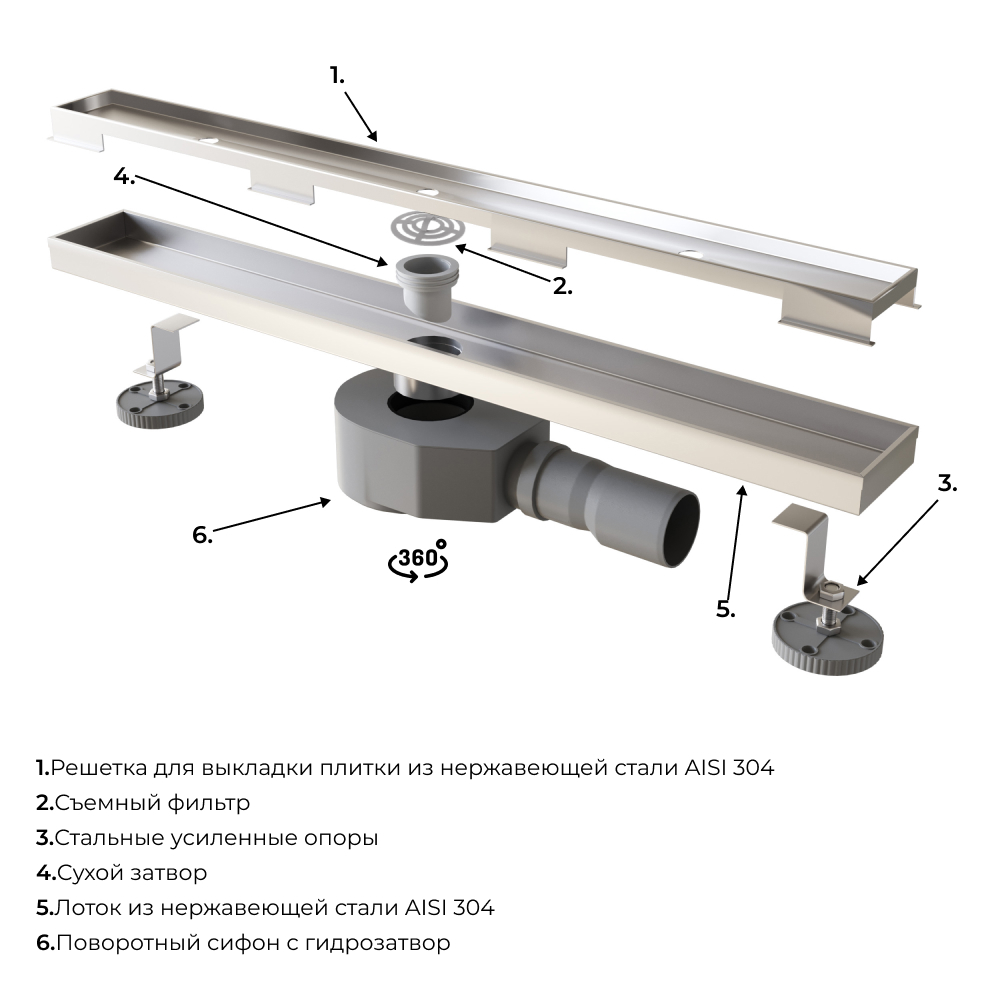Высокая пропускная способность 42 л/мин. обеспечит быстрый сток воды.