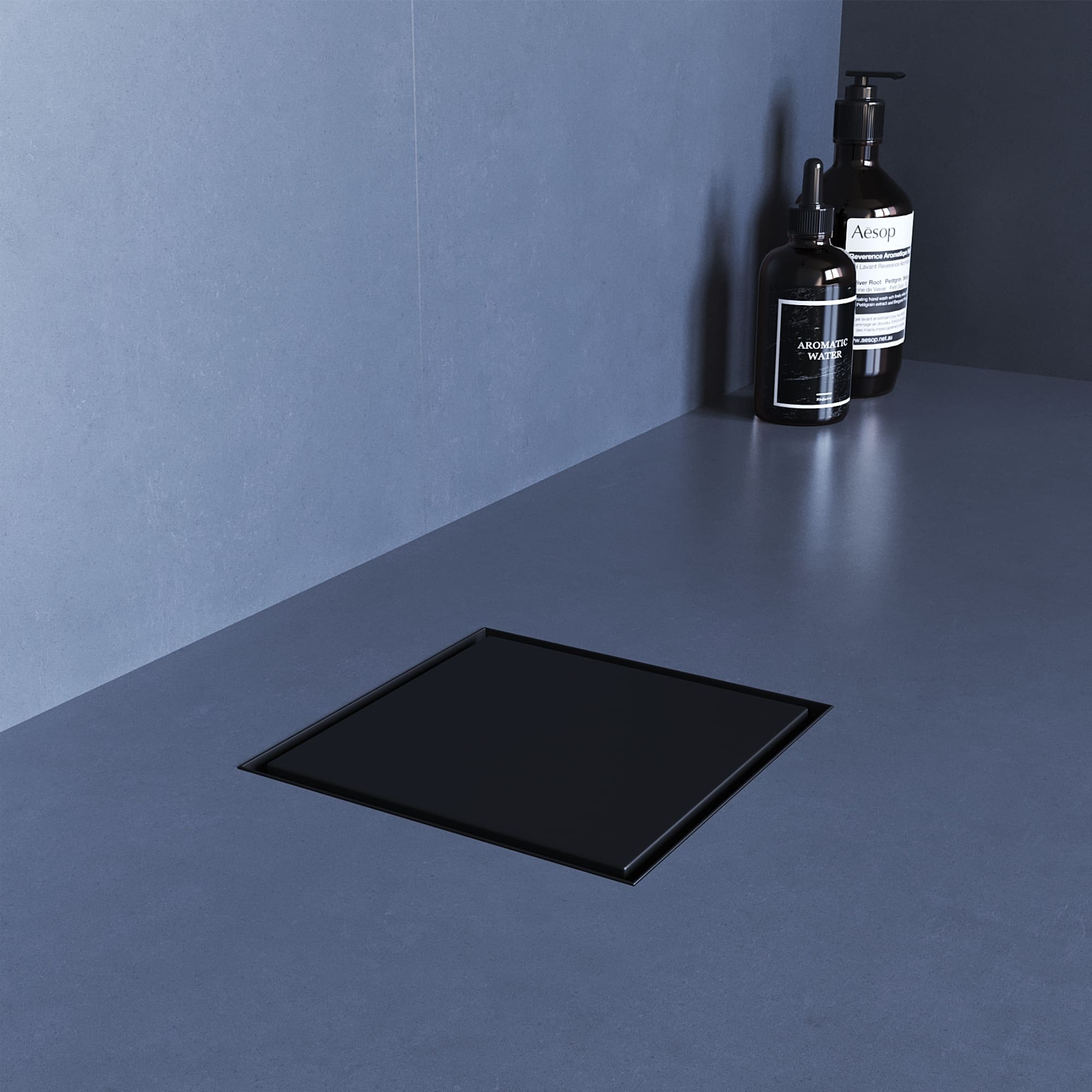 Душевой трап RGW SDR-10 квадратный, черный, с двухсторонней металлической крышкой, с одной стороны металл, с другой под вкладку керамической плитки, толстостенный, сифон сухой и гидрозатвор