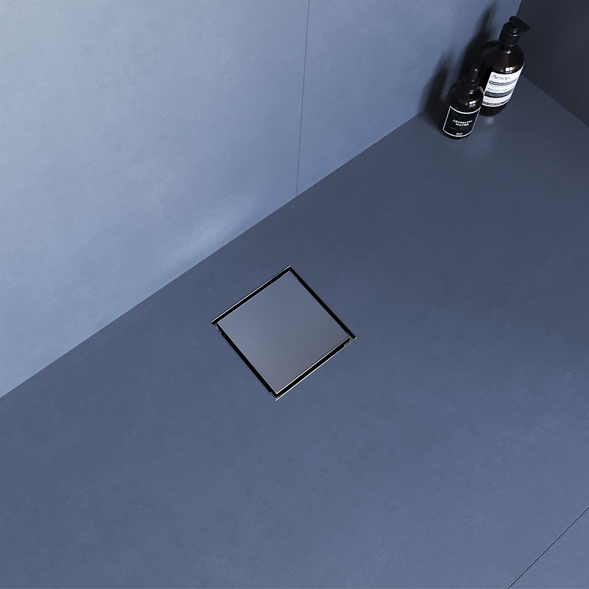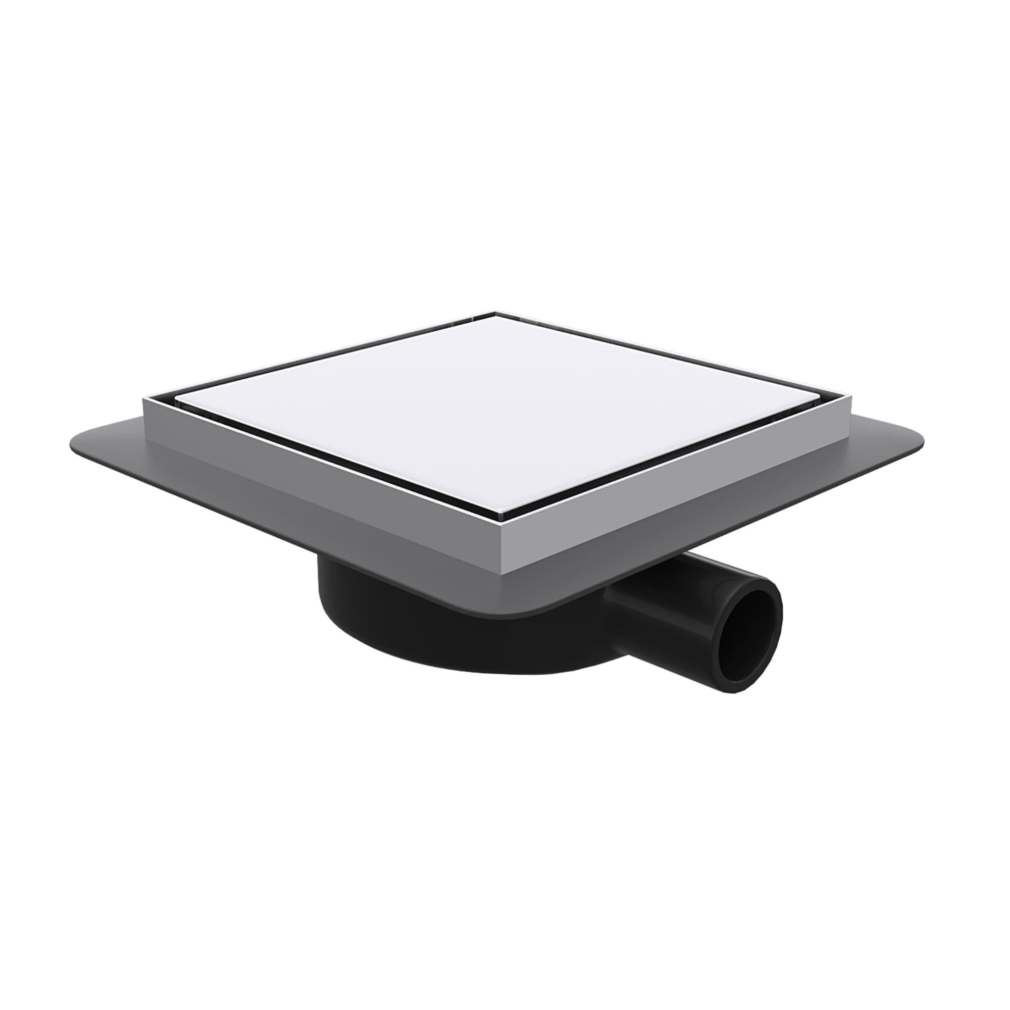 Декоративная крышка, встав на пластиковые упоры, образовывает щелевые отверстия с четырех сторон квадрата, куда сливается вся вода из душевого пространства. Для того чтобы вода эффективно отводилась в трап, на этапе монтажа необходимо обеспечить уклон облицовочной плитки в центр душевого трапа.