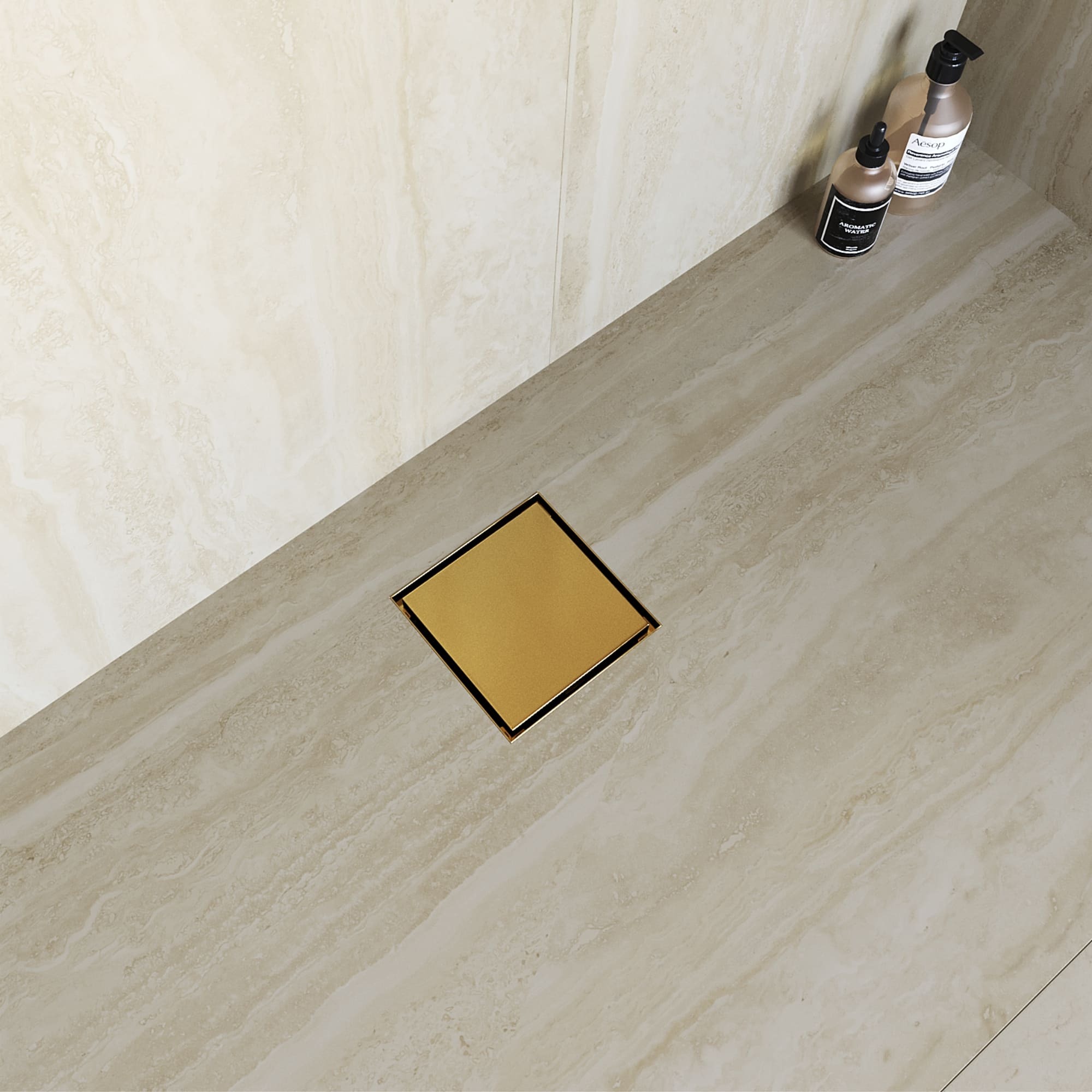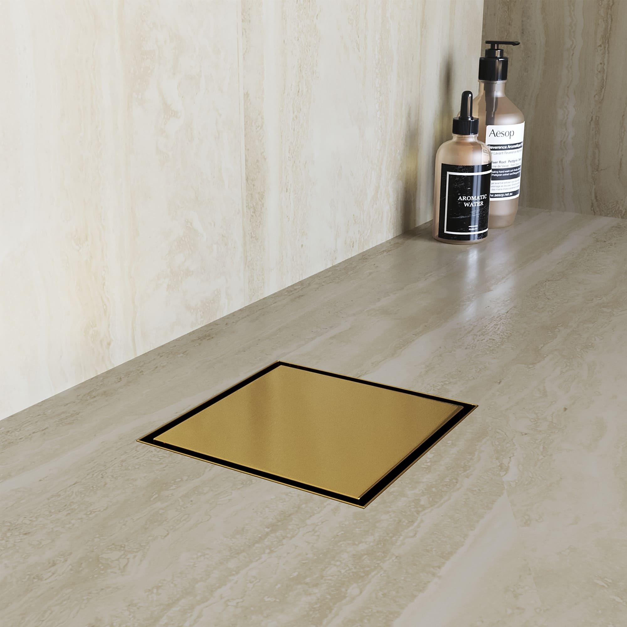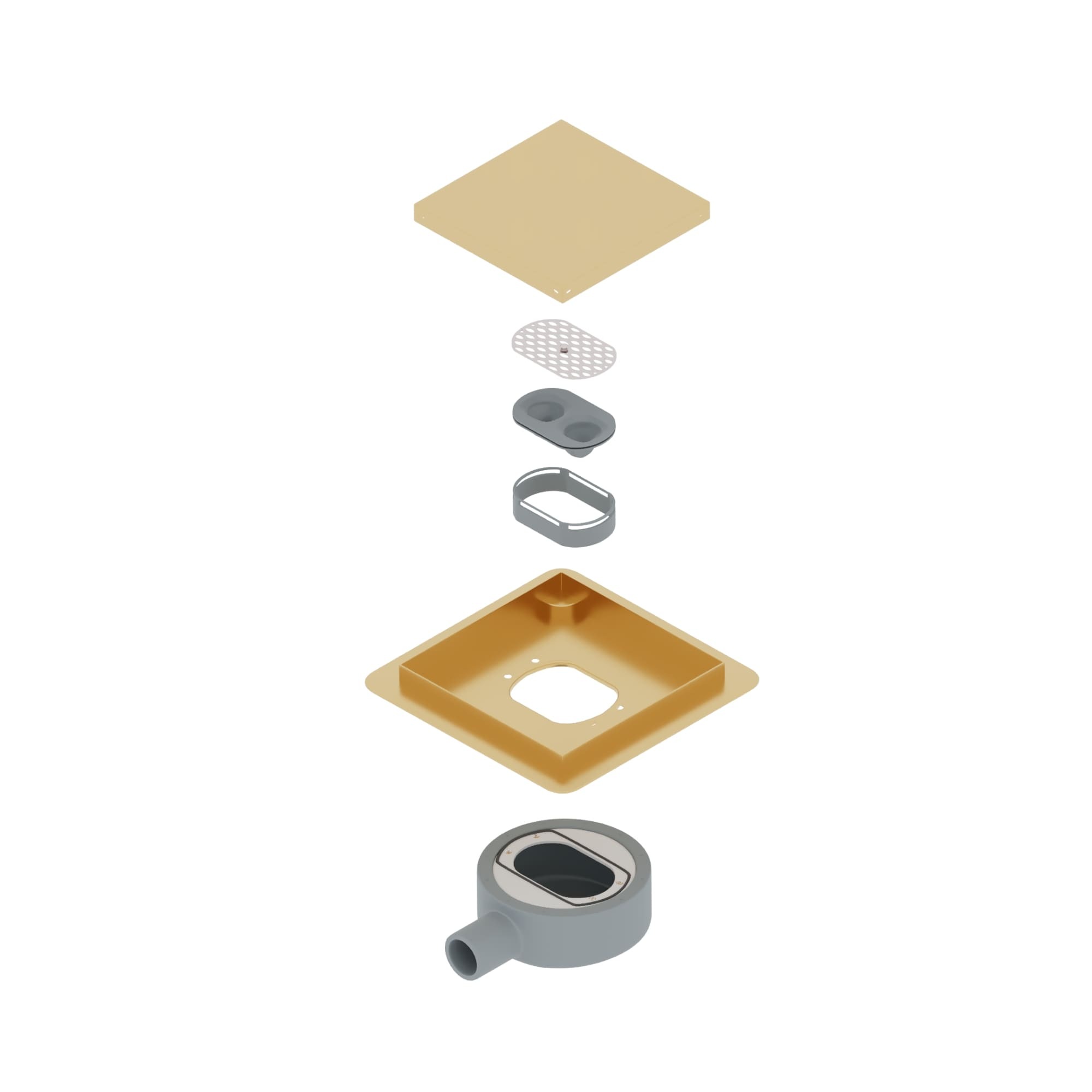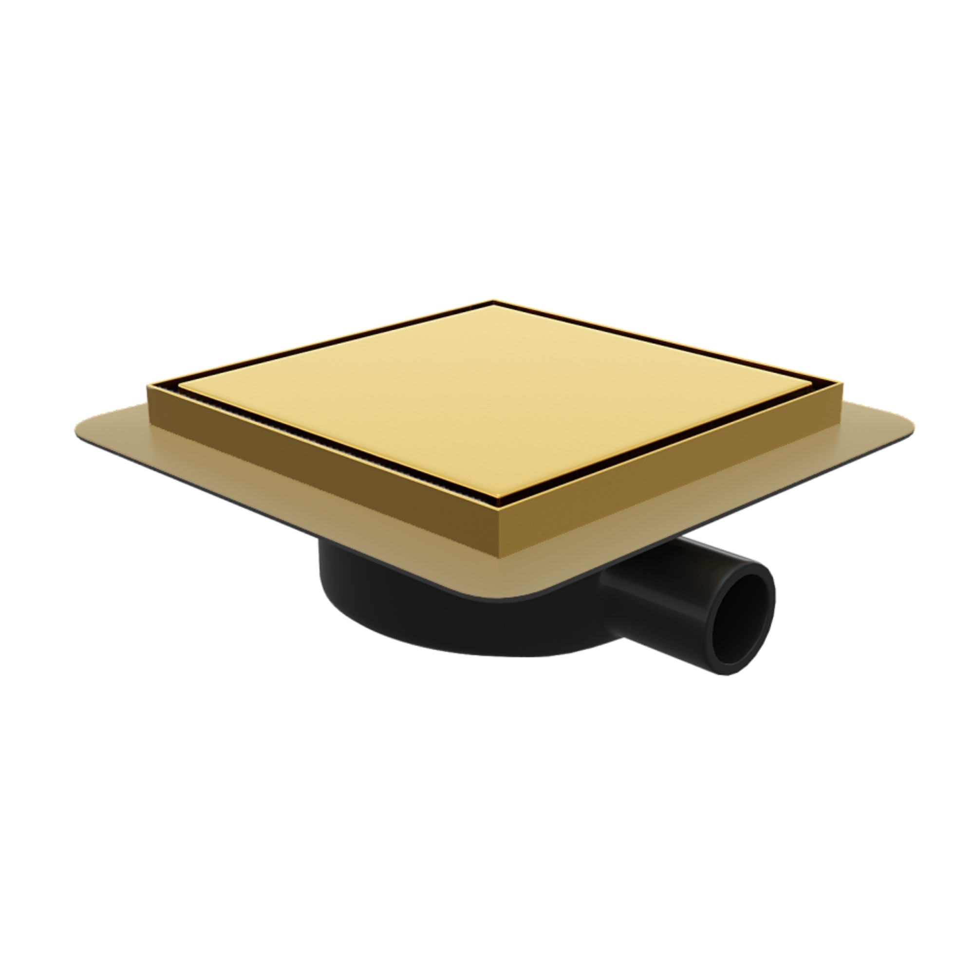 Душевой трап RGW SDR-10 квадратный, золото BRUSH с двухсторонней металлической крышкой, с одной стороны металл, с другой под вкладку керамической плитки, толстостенный, сифон сухой и гидрозатвор