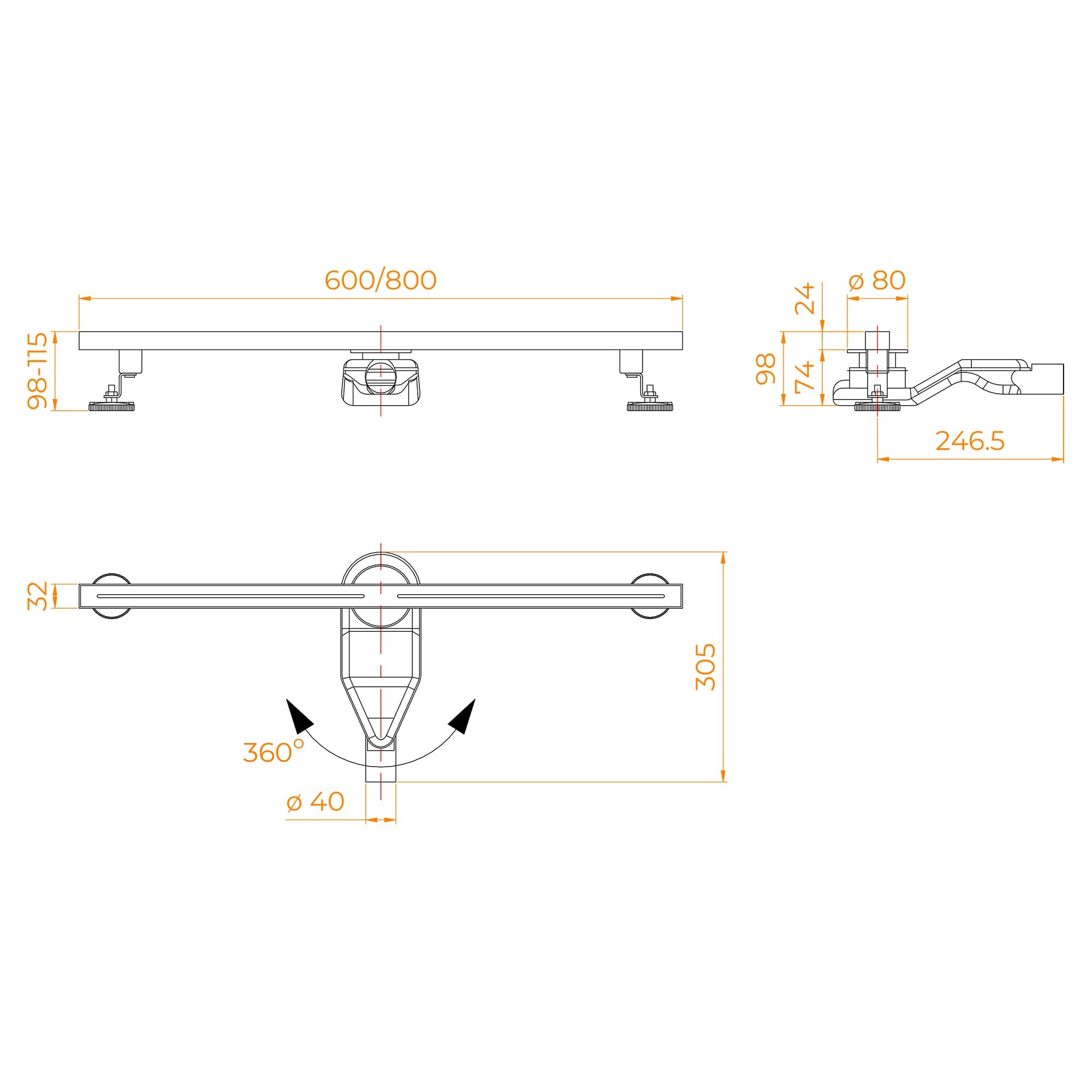 Две опоры из нержавеющей стали ISIA 304 с регулировкой высоты 98-115 мм