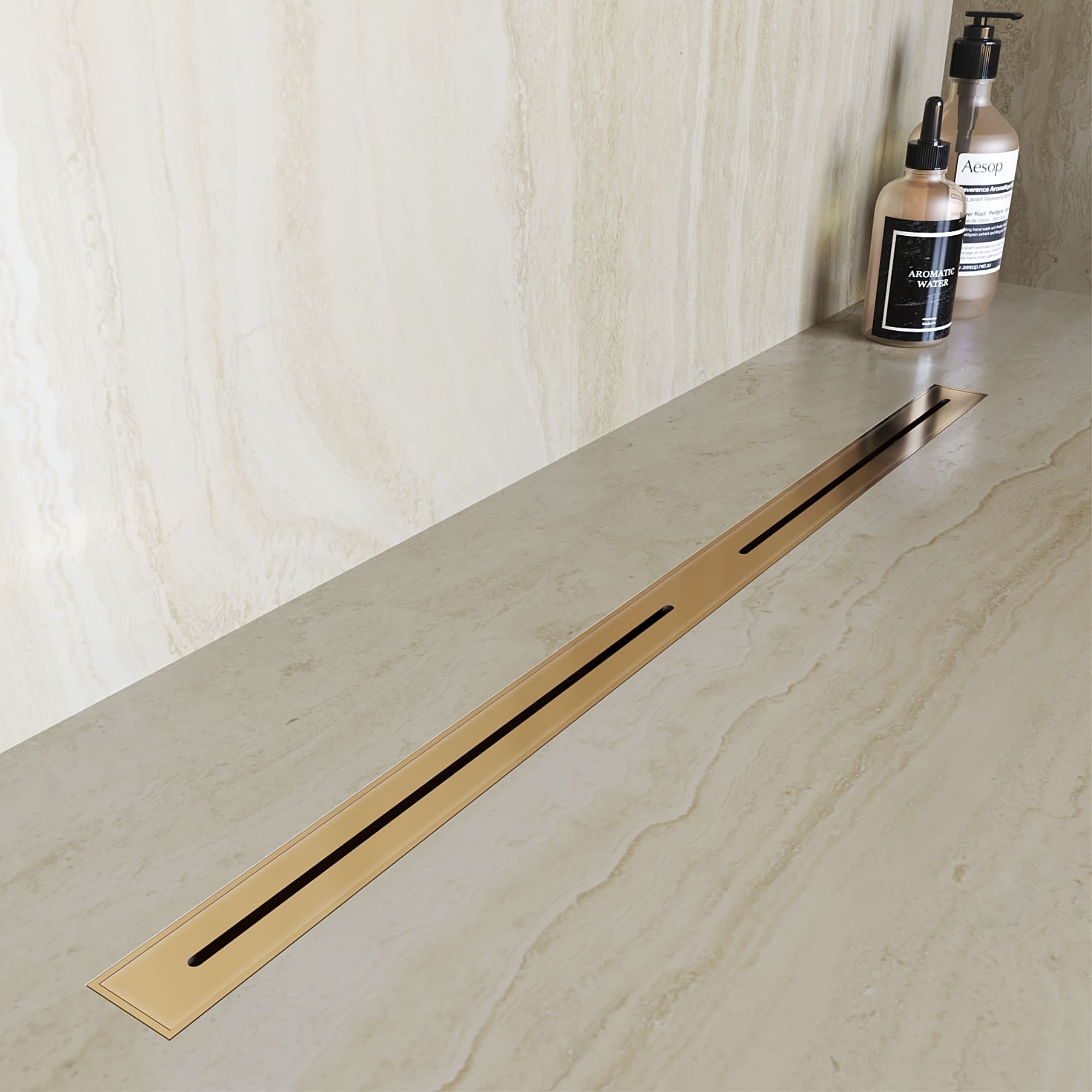 Душевой трап RGW SDR-52Gb однолинейный щелевой Золото браш Ø 50 мм сифон + ножки