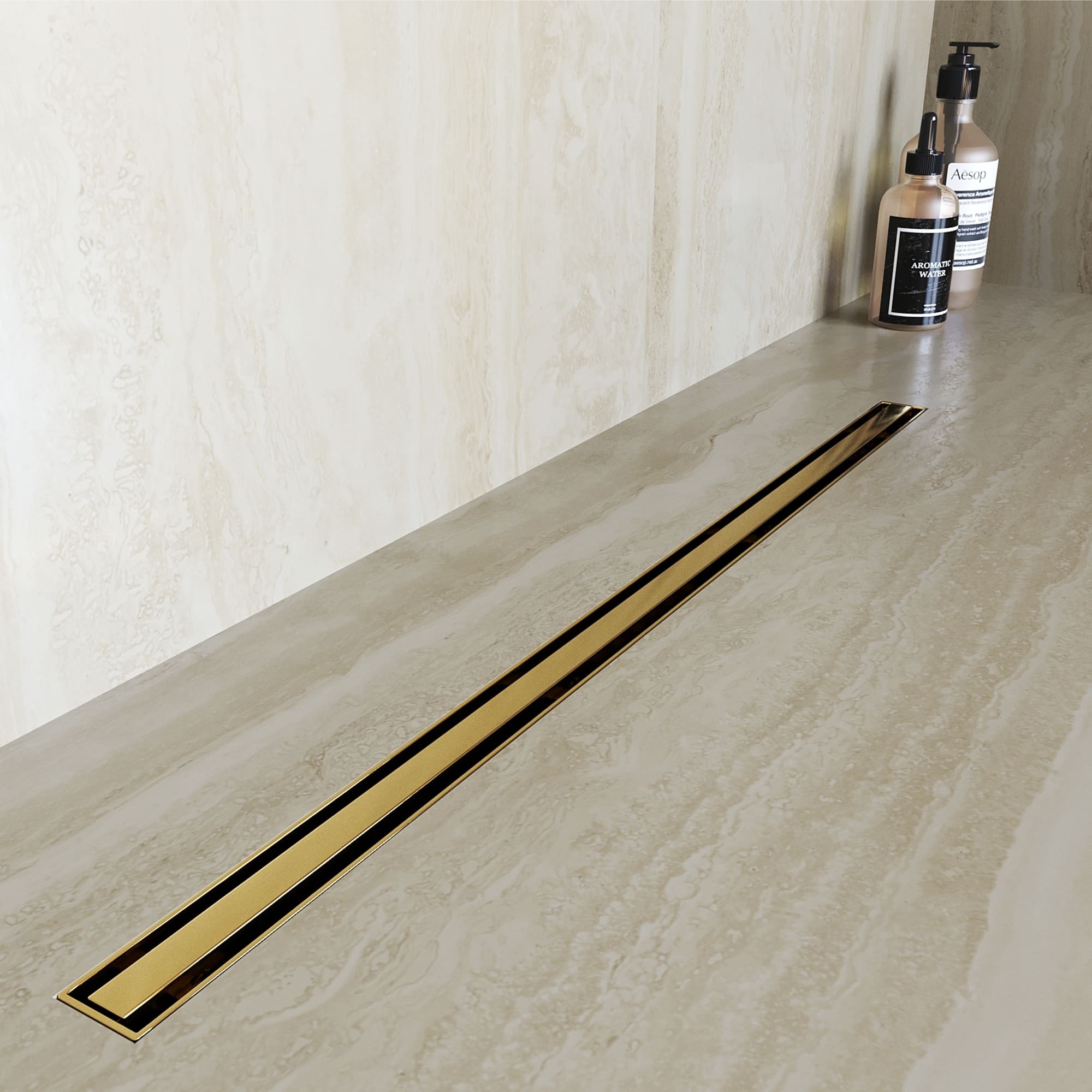Душевой трап RGW SDR-54Gb однолинейный щелевой Золото браш Ø 50 мм сифон + ножки