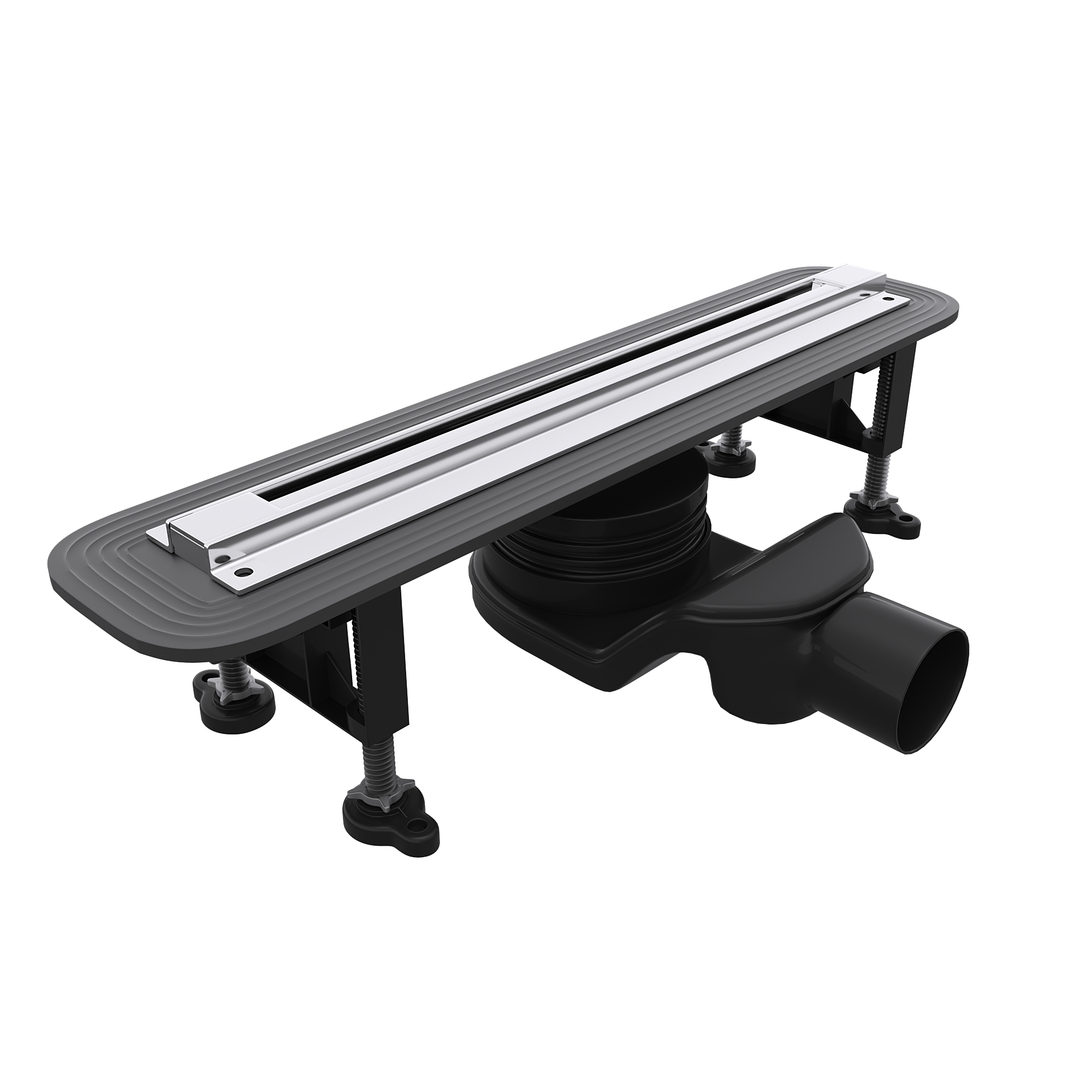 Душевой трап комплектуется усиленной опорной конструкцией: опоры (ножки) в количестве 4-х шт. + 2 специальных крепления для опор к трапу. Опоры и крепления выполнены из высокопрочного ABS-пластика. Ножки вкручиваются в каждое крепления по 2 шт., а крепления фиксируются на специальные полозья снизу лотка и легко передвигаются по длине трапа. Немецкие инженеры специально для компании RGW - Стильные Душевые разработали качественную систему опор под названием - tray bridge supports. Инновация в разработке опор в том, что регулировка высоты производится путём вкручивания или выкручивания опор из креплений, что значительно облегчит монтаж трапа.