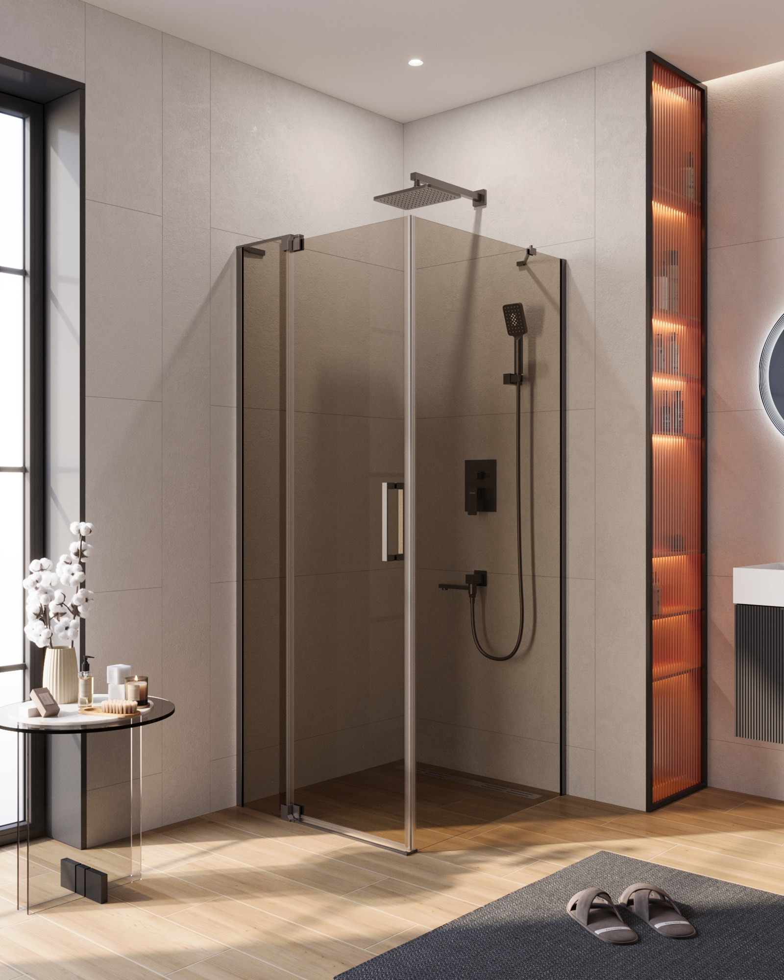 ОБРАТИТЕ ВНИМАНИЕ: конструкция петли позволяет регулировать ширину входа душевого ограждения в диапазоне 10 см.