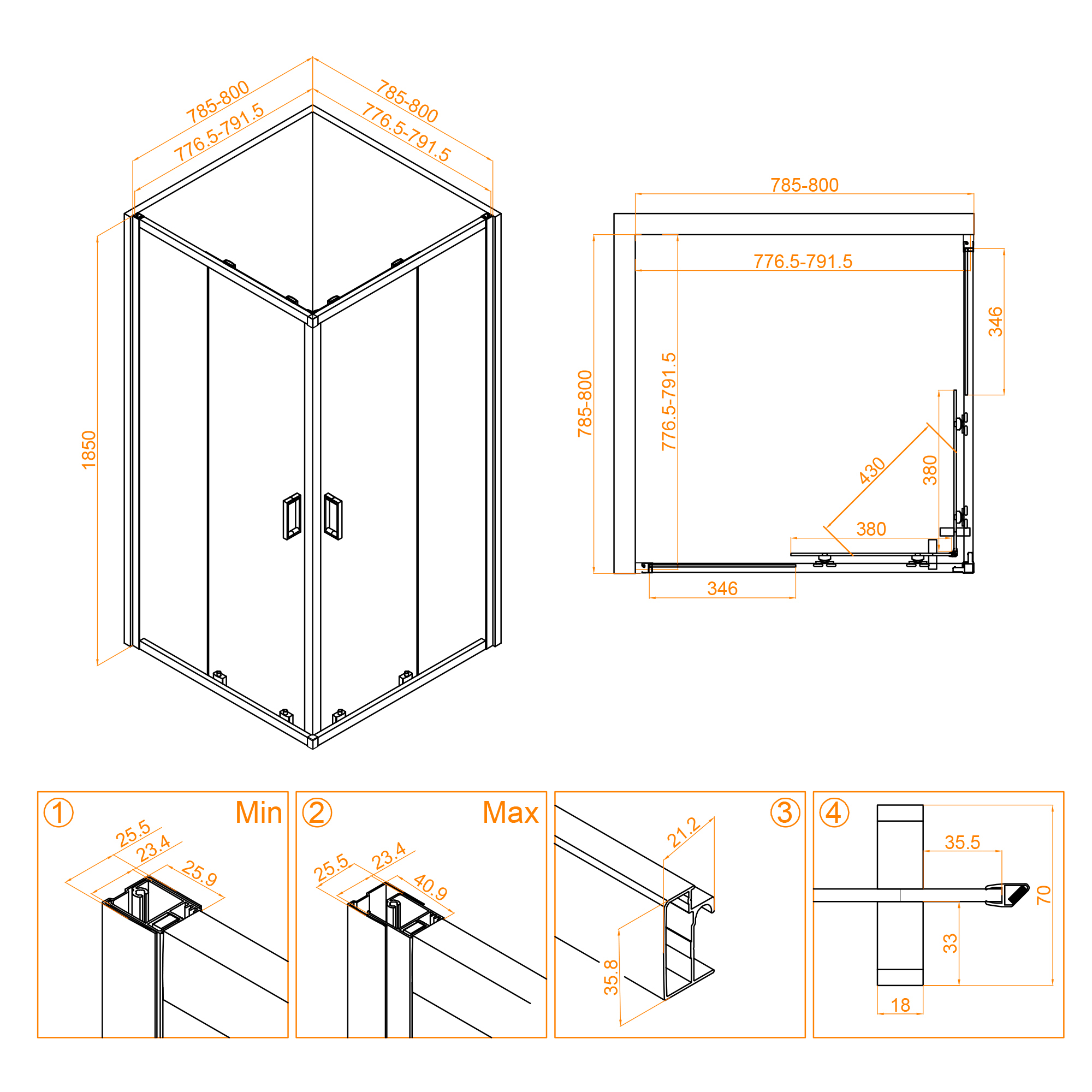 Профиль душевого уголка выполнен из анодированного алюминия черного цвета. Черный цвет профиля придает уголку элегантный и стильный вид. К тому же, профиль уголка регулируемый, что позволяет легко и точно подстроить его под размеры и форму вашей ванной комнаты.