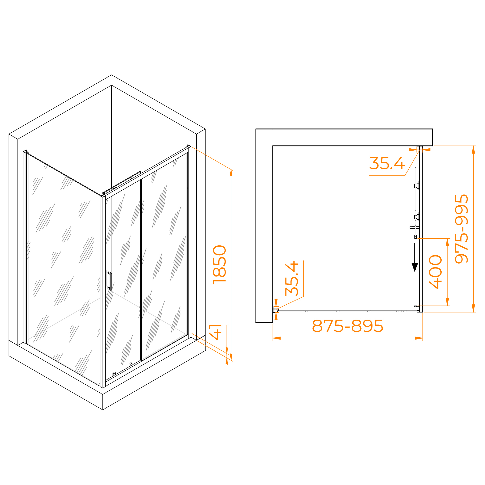 Душевой уголок имеет прямоугольную форму, которая позволяет эффективно использовать пространство в ванной комнате. Высота душевого угла составляет 1850 мм, что обеспечивает комфортное пребывание внутри него.