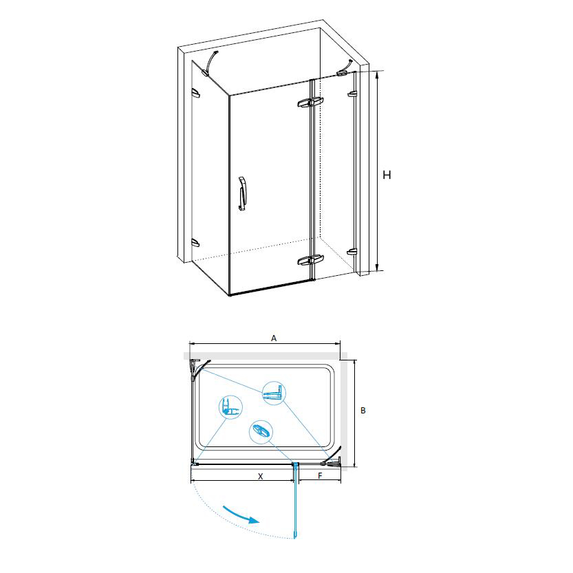 Высота душевого уголка 1950 мм, что гарантирует максимальный комфорт пришествии в душевой уголок и позволяет использовать его без ограничений. Класс герметичности дверей составляет 2, что гарантирует полную герметичность и защиту от протекания воды. Конструкция дверей распашные - это даёт возможность максимально удобного доступа к душевому уголку и никаких проблем с закрытием дверей.