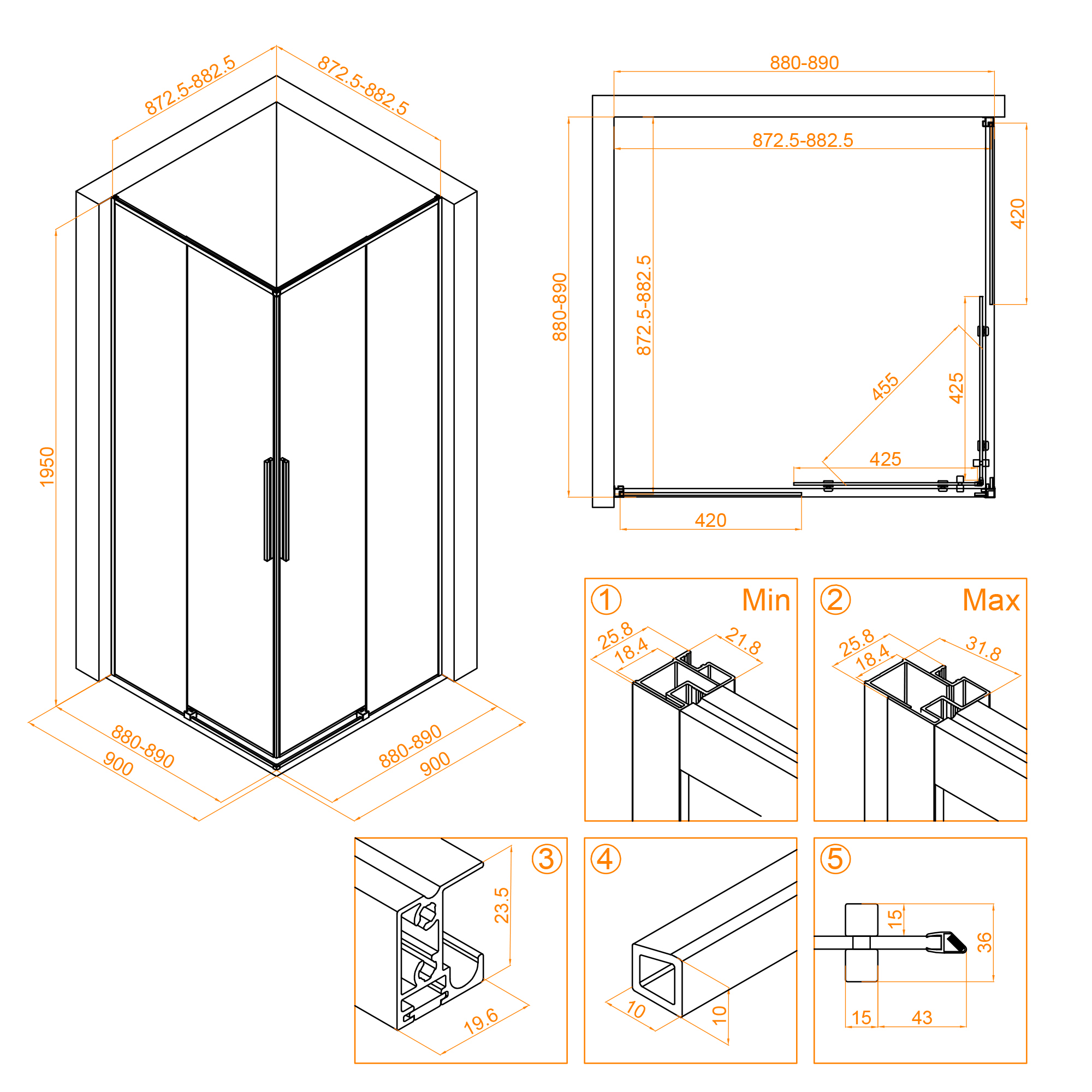 Душевой уголок имеет квадратную форму, что придает ему современный и элегантный вид. Цвет профиля выполнен в хромированном исполнении, что добавляет блеска и выразительности его дизайну, а также позволяет легко сочетаться с другими элементами интерьера.