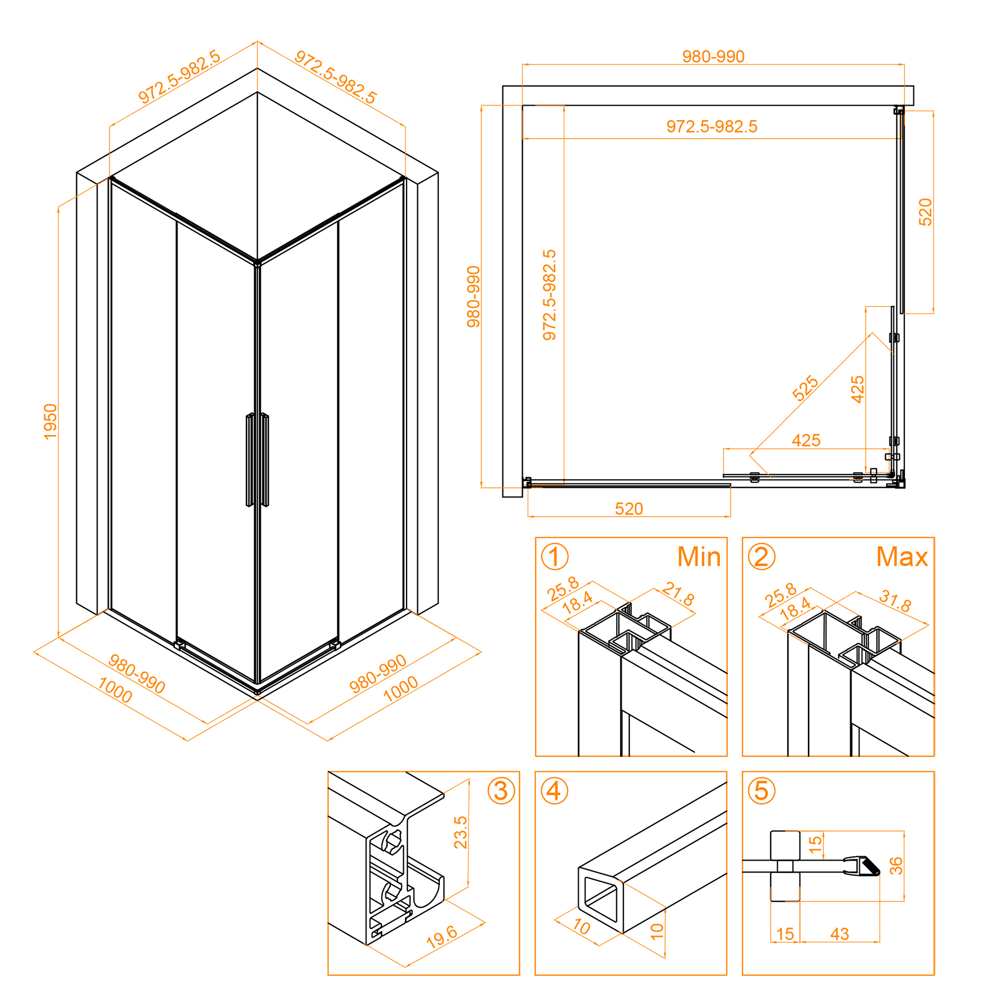 Душевой уголок имеет квадратную форму, что позволяет оптимально использовать пространство в вашей ванной комнате. Высота уголка составляет 1950 мм, что обеспечивает достаточное пространство для комфортного принятия душа.