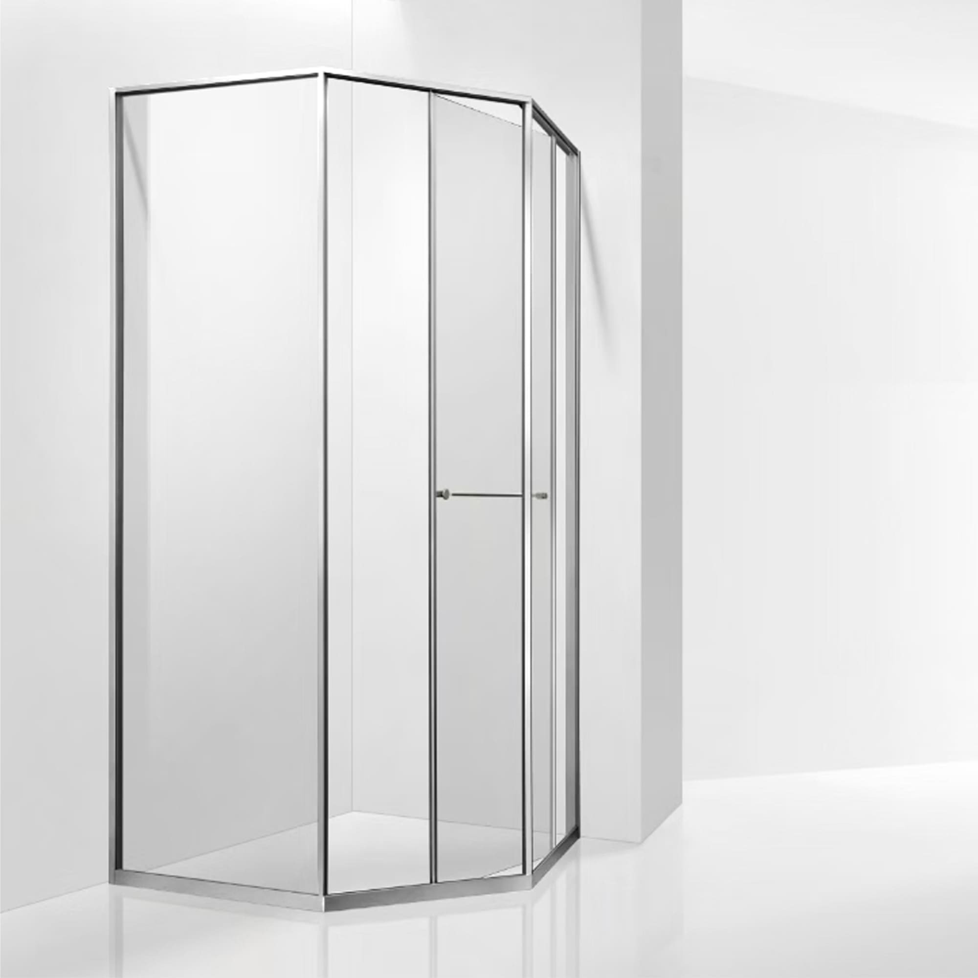 Инновационный механизм раздвижной системы при открытии плавно смещает дверь вдоль стационарного стекла при этом обеспечивая комфортный вход и просторное пространство внутри душевого угла.