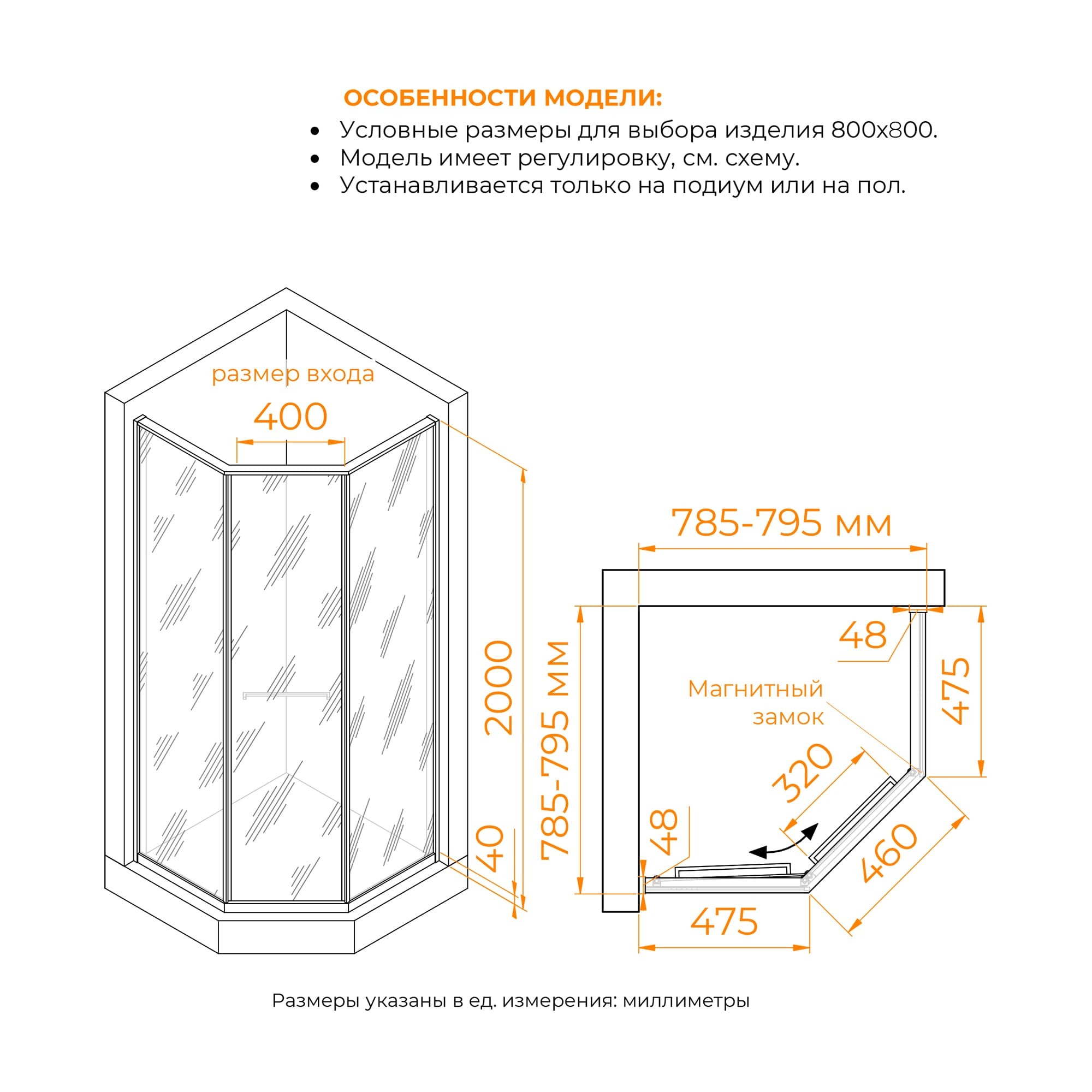 Душевые углы можно установить, как на плитку с трапом так и на поддон соответствующего размера. (с поддоном стандартного размера не совместим (см. схему изделия)