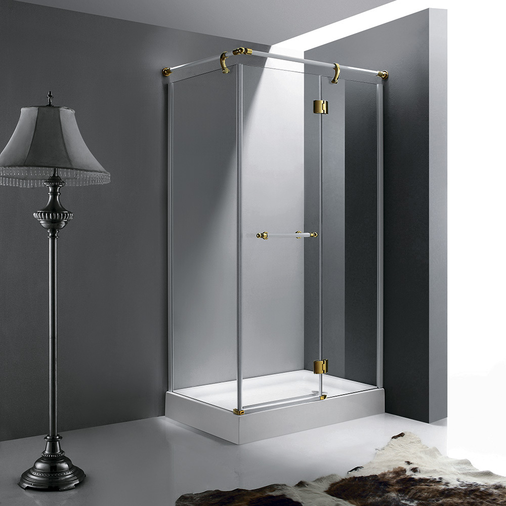 Душевой уголок имеет прямоугольную форму, такую форму душевого угла выбирают для максимального использования доступного пространства в ванной комнате. Стекло прозрачное и высота душевого угла составляет 1950 мм, что создает ощущение простора и свободы во время принятия душа. Водонепроницаемые стальные петли обеспечивают надежность и долговечность работы дверей душевого уголка.