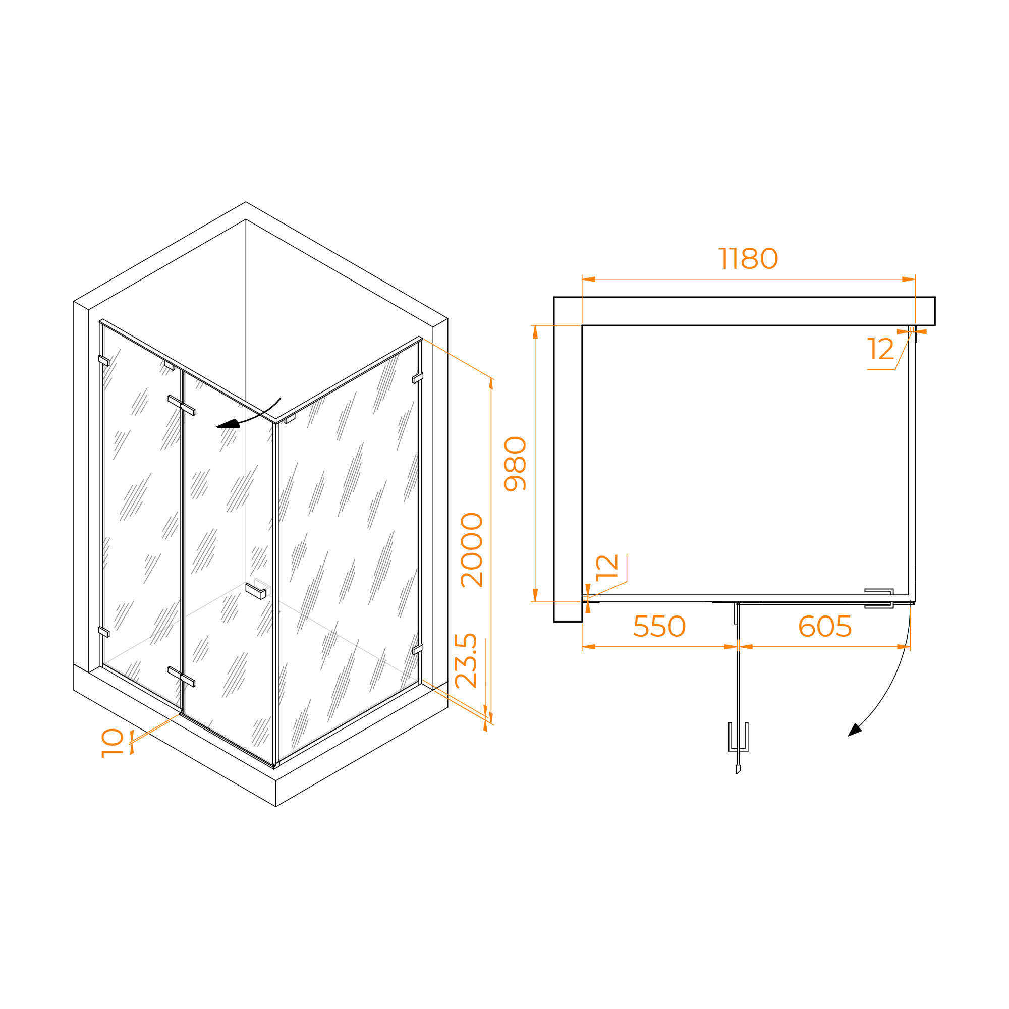 Душевой уголок универсальный, на любую сторону открытия двери, высотой 2000 мм.