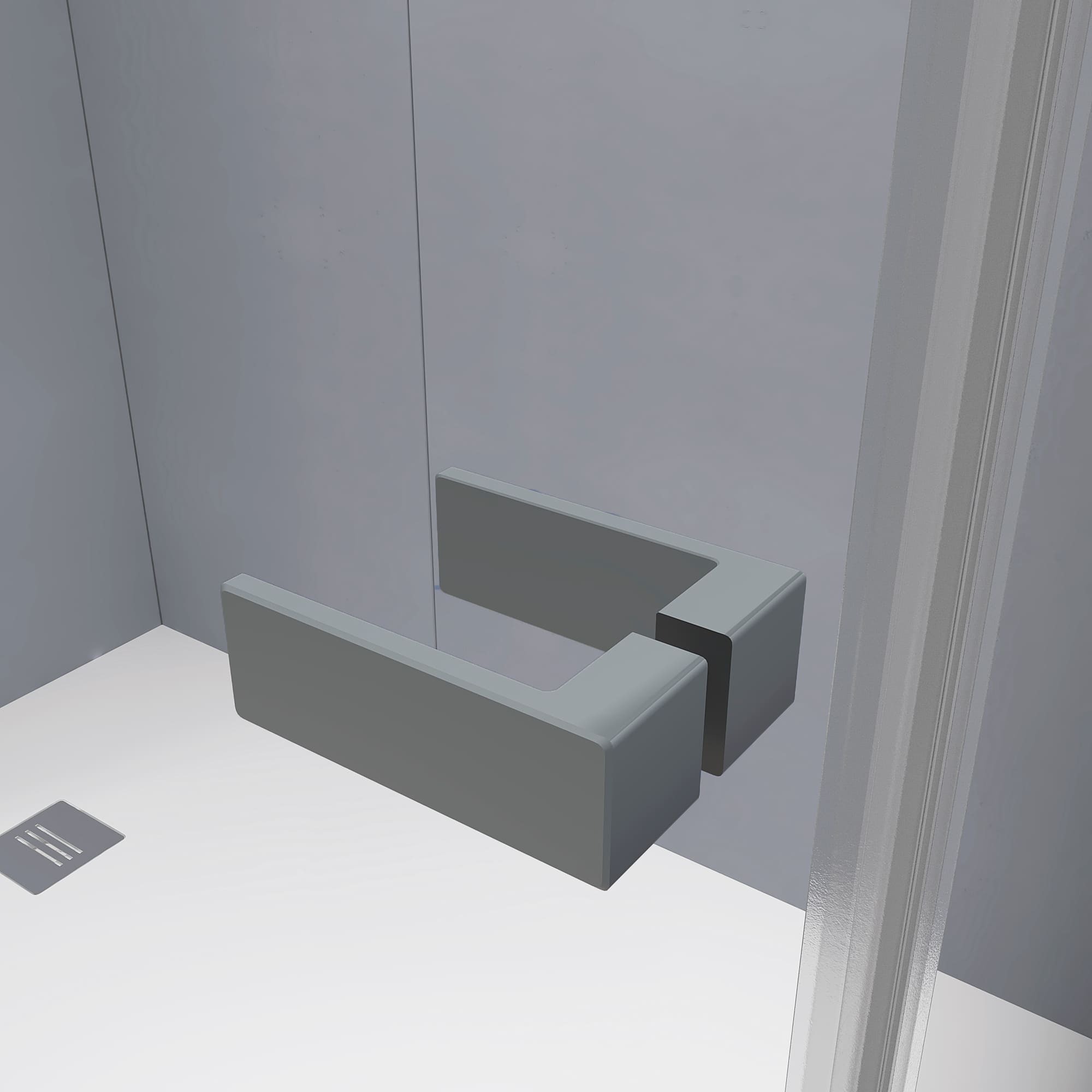 Душевой уголок состоит из трех полотен стекла - два стационарных полотна и одно полотно «Дверь», которая распахивается на широкий вход, благодаря двум элегантным прямоугольным петлям, типа «стекло-стекло».