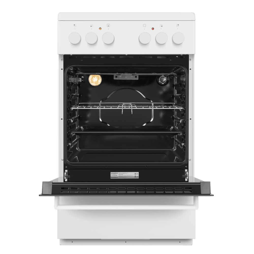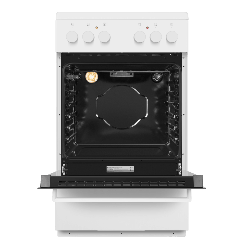 Плита MEC55CW07- надежный и практичный бытовой прибор, оснащенный духовкой с 3 рабочими режимами, включая гриль, и стеклокерамической варочной поверхностью с 4 зонами нагрева HiLight.