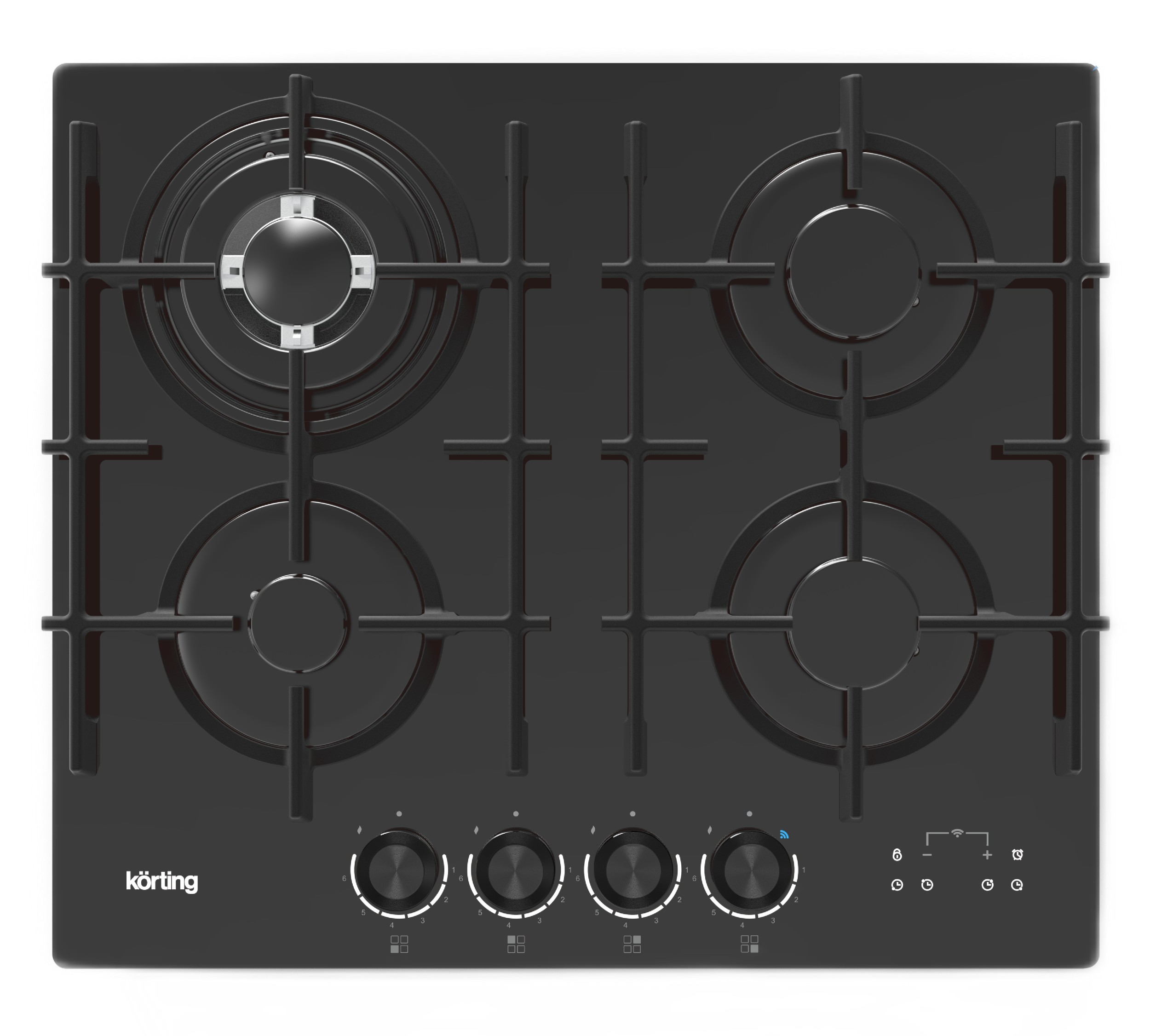Электронный таймер с цифровой индикацией Газовые варочные поверхности с уникальным электронным управлением полностью меняют ощущения от взаимодействия с прибором. Одна из самых востребованных функций – таймер отключения на каждую конфорку. Достаточно установить время, по истечении которого подача газа автоматически прекращается, и процесс приготовления останавливается. Благодаря таймеру обеспечивается высокая степень безопасности и удобства, чтобы наслаждаться процессом кулинарного творчества без лишних забот. Функция управления кухонной вытяжкой После сопряжения двух приборов скорость работы вытяжки будет изменяться автоматически, в зависимости от выбранного уровня мощности варочной поверхности. Управлять вытяжкой можно как с ее контрольной панели, так и с варочной поверхности, без необходимости повторного соединения устройств. Стеклянная поверхность Самая высокая устойчивость к тепловому и химическому воздействию, низкое тепловое расширение, высокая устойчивость к тепловым ударам, способность выдерживать в течение длинных периодов времени температуры до 450°C. Все это позволяет использовать его в течение длительного времени, в самых сложных задачах при приготовлении пищи. Уникальная конструкция WOK Новая зона WOK помогает распределять тепло по всему дну посуды, обеспечивая более равномерный прогрев всего дна. Новая конструкция позволяет снизить потребление газа без изменения эффективности. Газ-контроль Во всех моделях Körting установлена система безопасности «Газ-контроль». Данная функция перекрывает подачу газа в случае, если конфорка случайно погаснет. Электроподжиг Вам больше не придется пользоваться спичками и зажигалками. Система «Электроподжиг» от Körting очень удобна и абсолютно безопасна. Просто поверните и нажмите регулятор — конфорка автоматически зажжется. Чугунные держатели для посуды Держатели из чугуна эргономичны и очень устойчивы. Вам будет удобно готовить на поверхностях Körting, а риск падения кастрюль и пролива жидкостей сводится к минимуму.