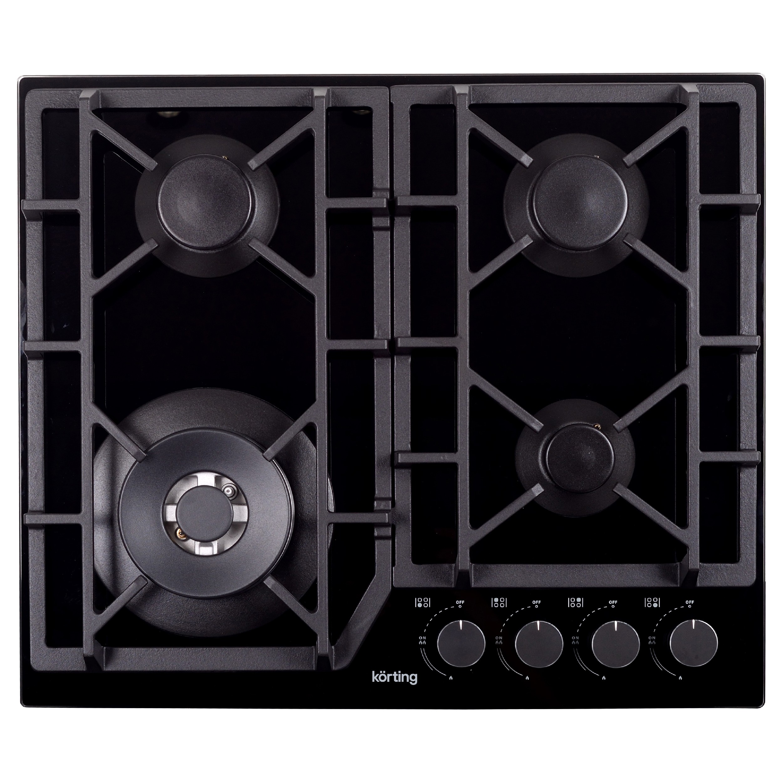 Газ-контроль Во всех моделях Körting установлена система безопасности «Газ-контроль». Данная функция перекрывает подачу газа в случае, если конфорка случайно погаснет. Электроподжиг Вам больше не придется пользоваться спичками и зажигалками. Система «Электроподжиг» от Körting очень удобна и абсолютно безопасна. Просто поверните и нажмите регулятор — конфорка автоматически зажжется. Чугунные держатели для посуды Держатели из чугуна эргономичны и очень устойчивы. Вам будет удобно готовить на поверхностях Körting, а риск падения кастрюль и пролива жидкостей сводится к минимуму. Металлические поворотные регуляторы Поворотные регуляторы газовых варочных поверхностей Körting выполнены из металла, что создает профессиональный стиль и препятствует их перегреву. Стеклянная поверхность Самая высокая устойчивость к тепловому и химическому воздействию, низкое тепловое расширение, высокая устойчивость к тепловым ударам, способность выдерживать в течение длинных периодов времени температуры до 450°C. Все это позволяет использовать его в течение длительного времени, в самых сложных задачах при приготовлении пищи. Уникальная конструкция WOK Новая зона WOK помогает распределять тепло по всему дну посуды, обеспечивая более равномерный прогрев всего дна. Новая конструкция позволяет снизить потребление газа без изменения эффективности. Расположение WOK-зоны Мощная горелка WOK расположена на передней части поверхности, что исключает нагрев стендовых панелей кухни, а регуляторы нагрева смещены в сторону. Такое расположение более удобное для приготовление объемных блюд.