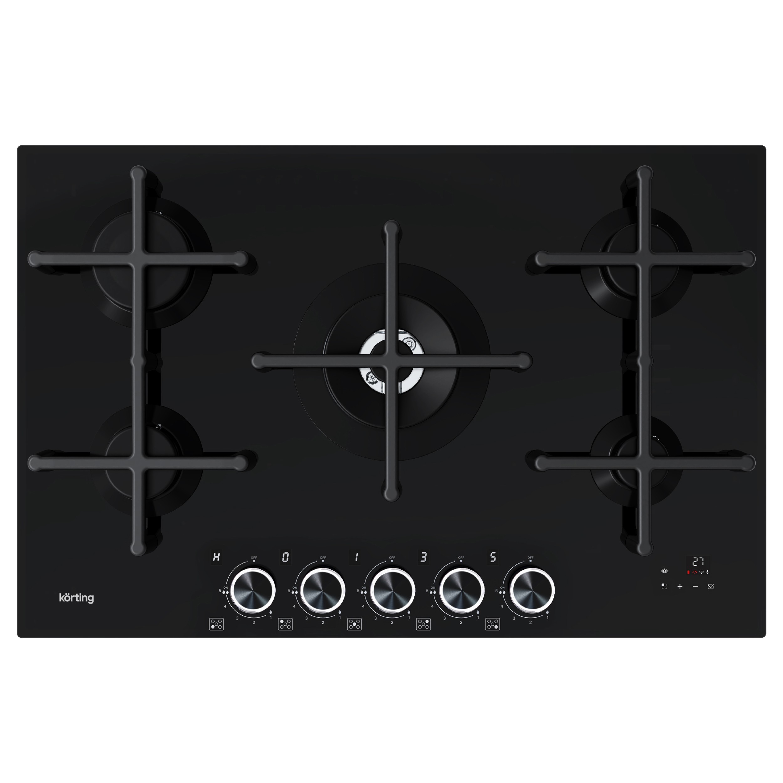 Функция мгновенного поджига Функция мгновенного электроподжига конфорки не требует длительного удерживания поворотного регулятора в нажатом положении, как это необходимо на стандартной газовой поверхности. Достаточно нажать и повернуть регулятор – соответствующая конфорка загорится в течение 2-3 секунд. Сигнализация утечки газа В случае обнаружения утечки газа, на дисплее будет мигать код неисправности, а также раздастся звуковой предупредительный сигнал. Код ошибки будет отображаться на дисплее пока неисправность, вызвавшая утечку не будет устранена. При этом прибор будет автоматически отключен сразу после срабатывания данной функции, любые операции с варочной поверхностью будут невозможны. Электронный таймер с цифровой индикацией Газовые варочные поверхности с уникальным электронным управлением полностью меняют ощущения от взаимодействия с прибором. Одна из самых востребованных функций – таймер отключения на каждую конфорку. Достаточно установить время, по истечении которого подача газа автоматически прекращается, и процесс приготовления останавливается. Благодаря таймеру обеспечивается высокая степень безопасности и удобства, чтобы наслаждаться процессом кулинарного творчества без лишних забот. Функция управления кухонной вытяжкой После сопряжения двух приборов скорость работы вытяжки будет изменяться автоматически, в зависимости от выбранного уровня мощности варочной поверхности. Управлять вытяжкой можно как с ее контрольной панели, так и с варочной поверхности, без необходимости повторного соединения устройств. Стеклянная поверхность Самая высокая устойчивость к тепловому и химическому воздействию, низкое тепловое расширение, высокая устойчивость к тепловым ударам, способность выдерживать в течение длинных периодов времени температуры до 450°C. Все это позволяет использовать его в течение длительного времени, в самых сложных задачах при приготовлении пищи. Уникальная конструкция WOK Новая зона WOK помогает распределять тепло по всему дну посуды, обеспечивая более равномерный прогрев всего дна. Новая конструкция позволяет снизить потребление газа без изменения эффективности. Индикация остаточного тепла Световой индикатор в варочных поверхностях Korting горит, пока температура соответствующего нагревательного поля не понизится до 60°С. Это можно также использовать для подогрева блюд при уже выключенной варочной панели, что позволяет экономить электроэнергию, а так же сообщит когда можно приступать к очистки поверхности. Газ-контроль Во всех моделях Körting установлена система безопасности «Газ-контроль». Данная функция перекрывает подачу газа в случае, если конфорка случайно погаснет. Электроподжиг Вам больше не придется пользоваться спичками и зажигалками. Система «Электроподжиг» от Körting очень удобна и абсолютно безопасна. Просто поверните и нажмите регулятор — конфорка автоматически зажжется. Чугунные держатели для посуды Держатели из чугуна эргономичны и очень устойчивы. Вам будет удобно готовить на поверхностях Körting, а риск падения кастрюль и пролива жидкостей сводится к минимуму.