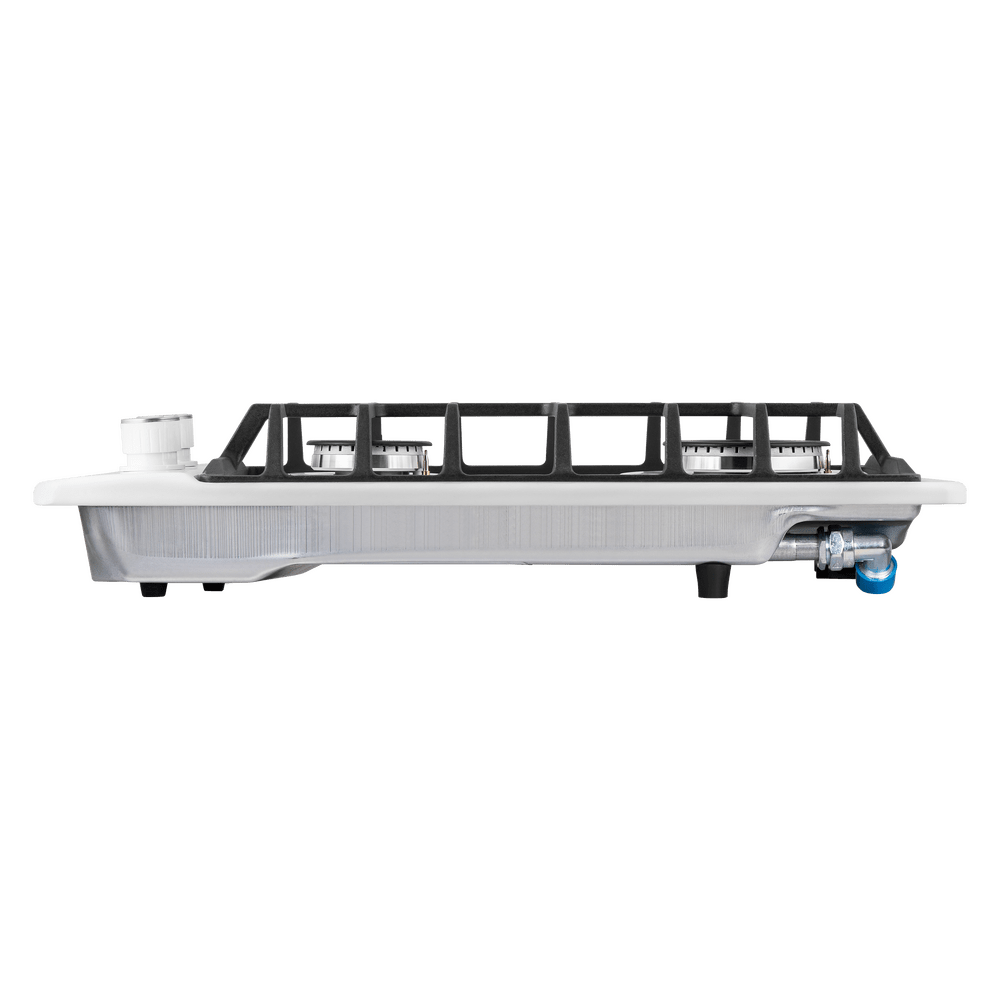 Компактная встраиваемая газовая варочная панель из нержавеющей стали с эмалированным покрытием.
