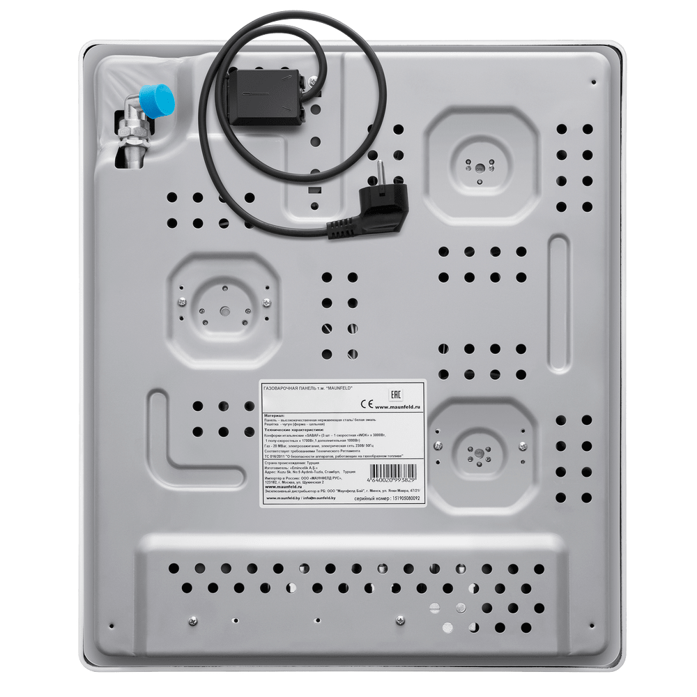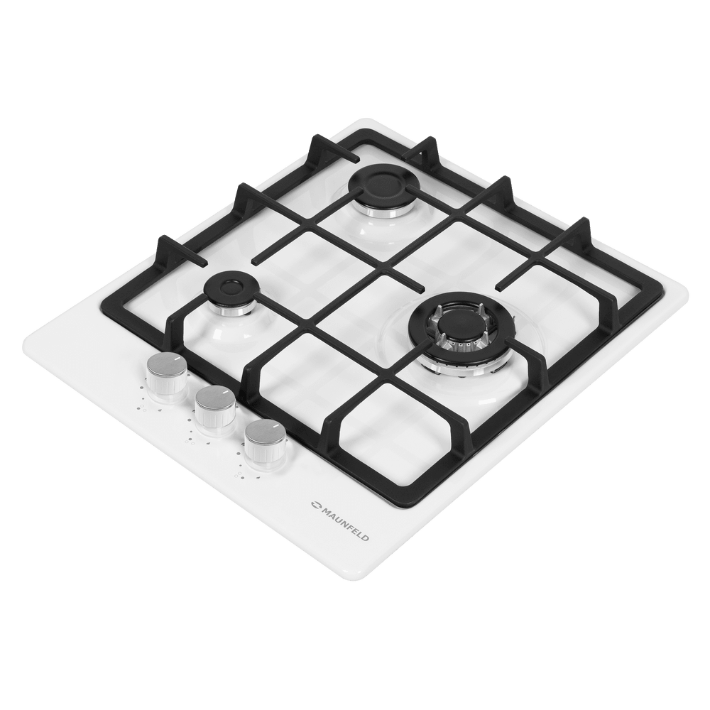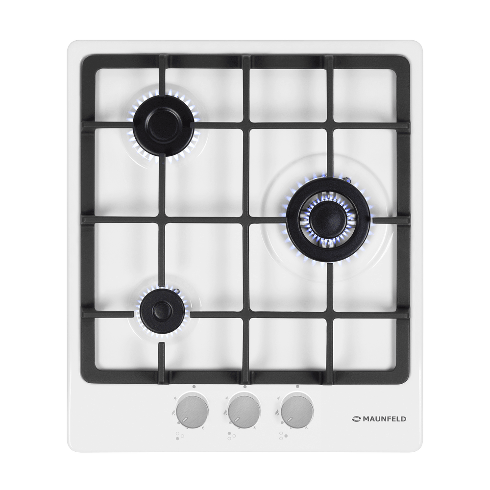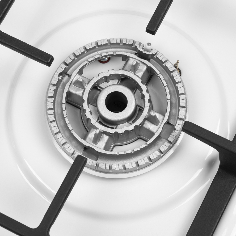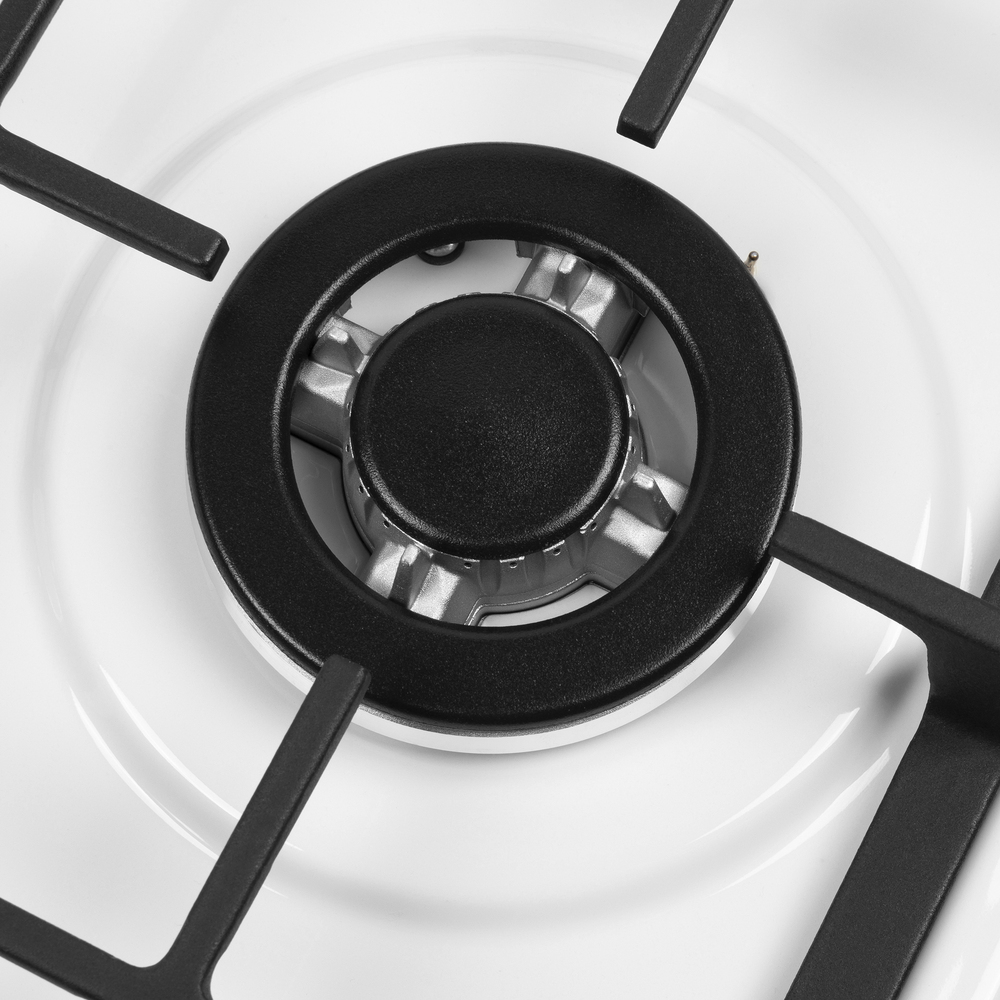 Компактная газовая варочная панель, выполненная из нержавеющей стали с покрытием из эмали.