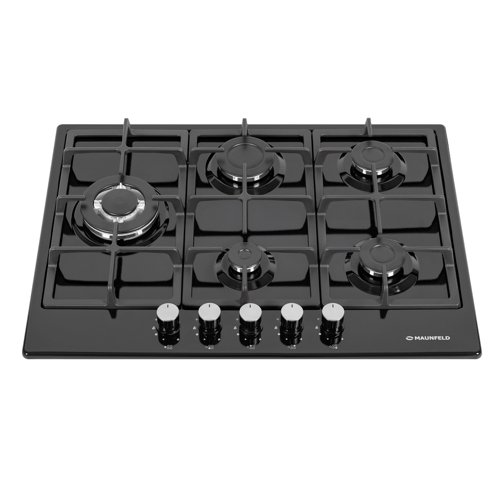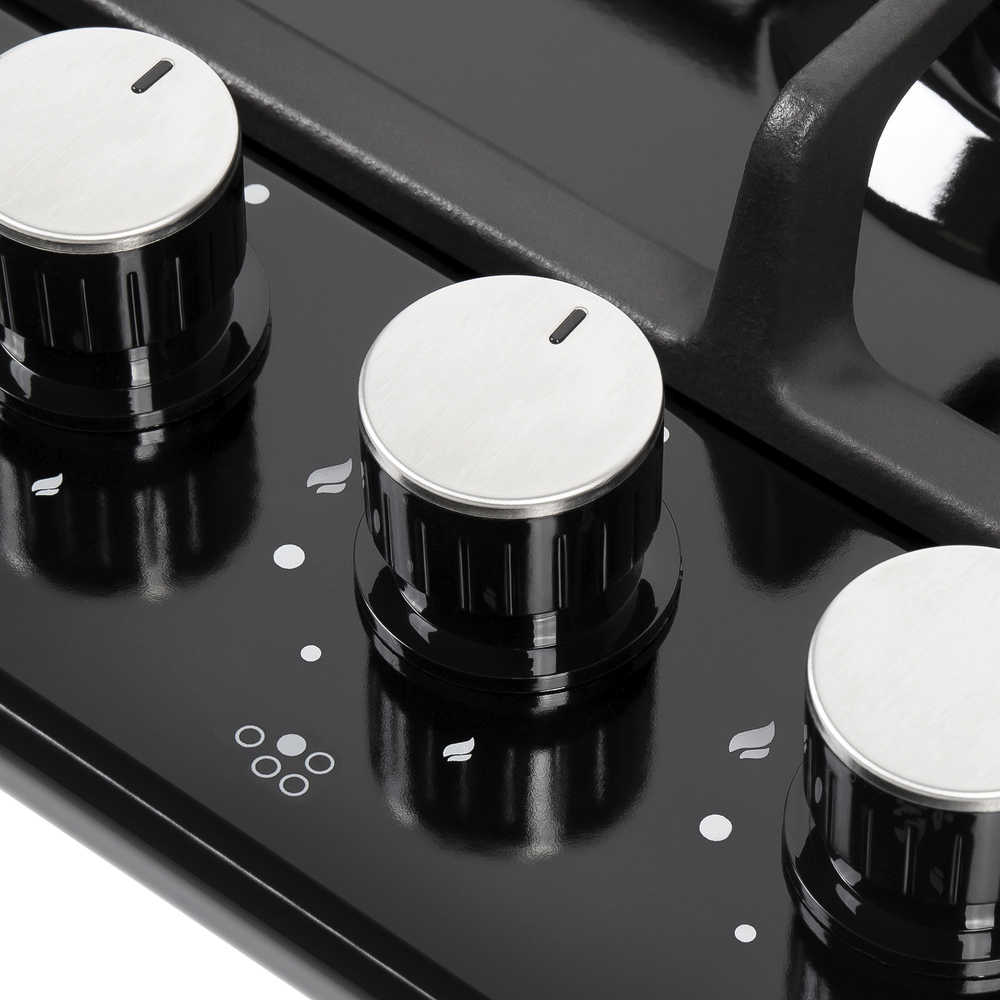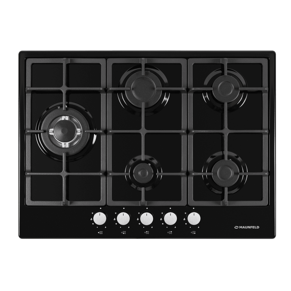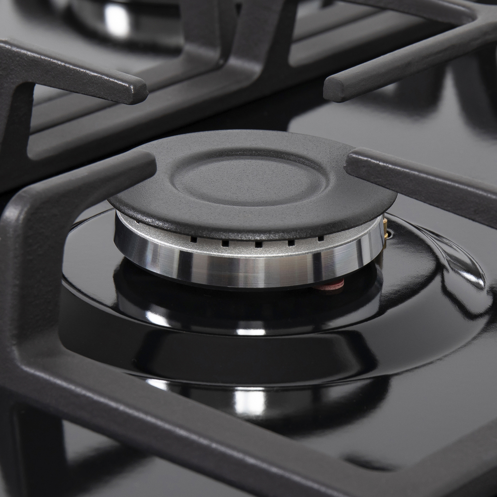 Мощная газовая встраиваемая варочная панель, выполненная из металла, покрытого термостойкой прочной эмалью.