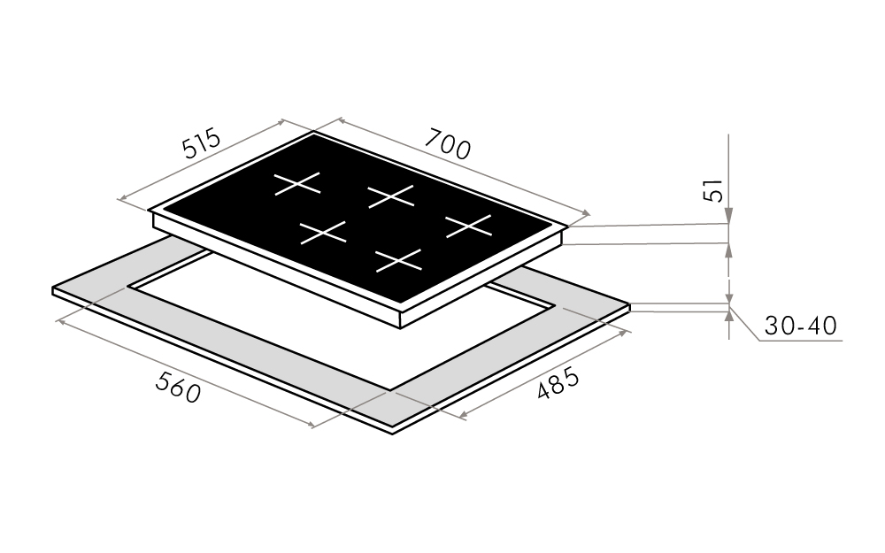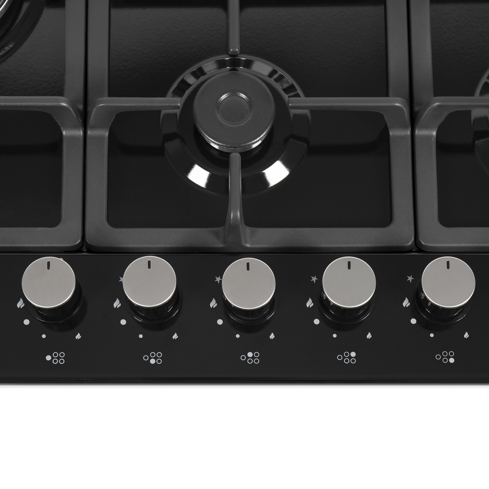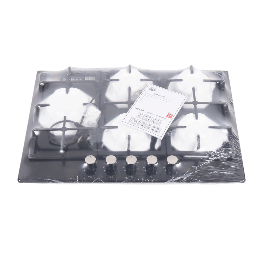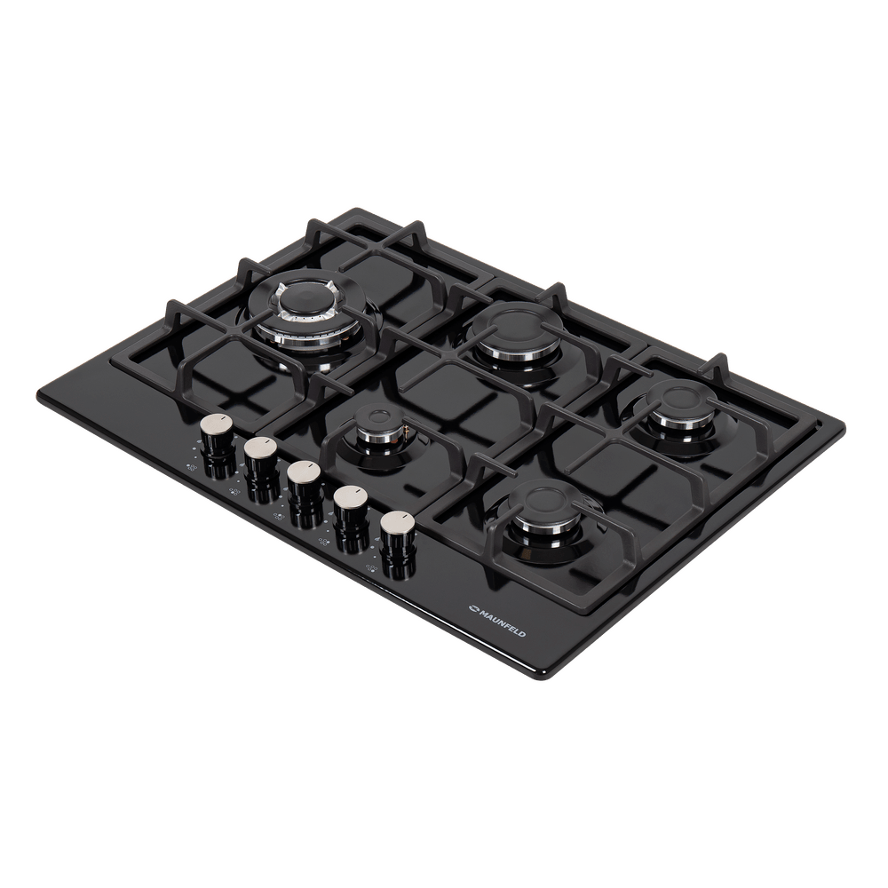 Мощная газовая встраиваемая варочная панель, выполненная из металла, покрытого термостойкой прочной эмалью.