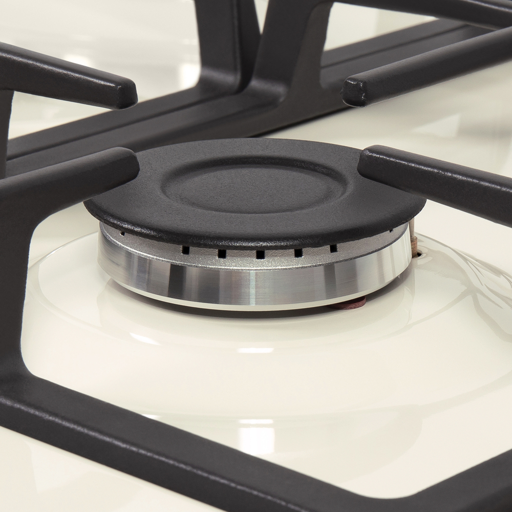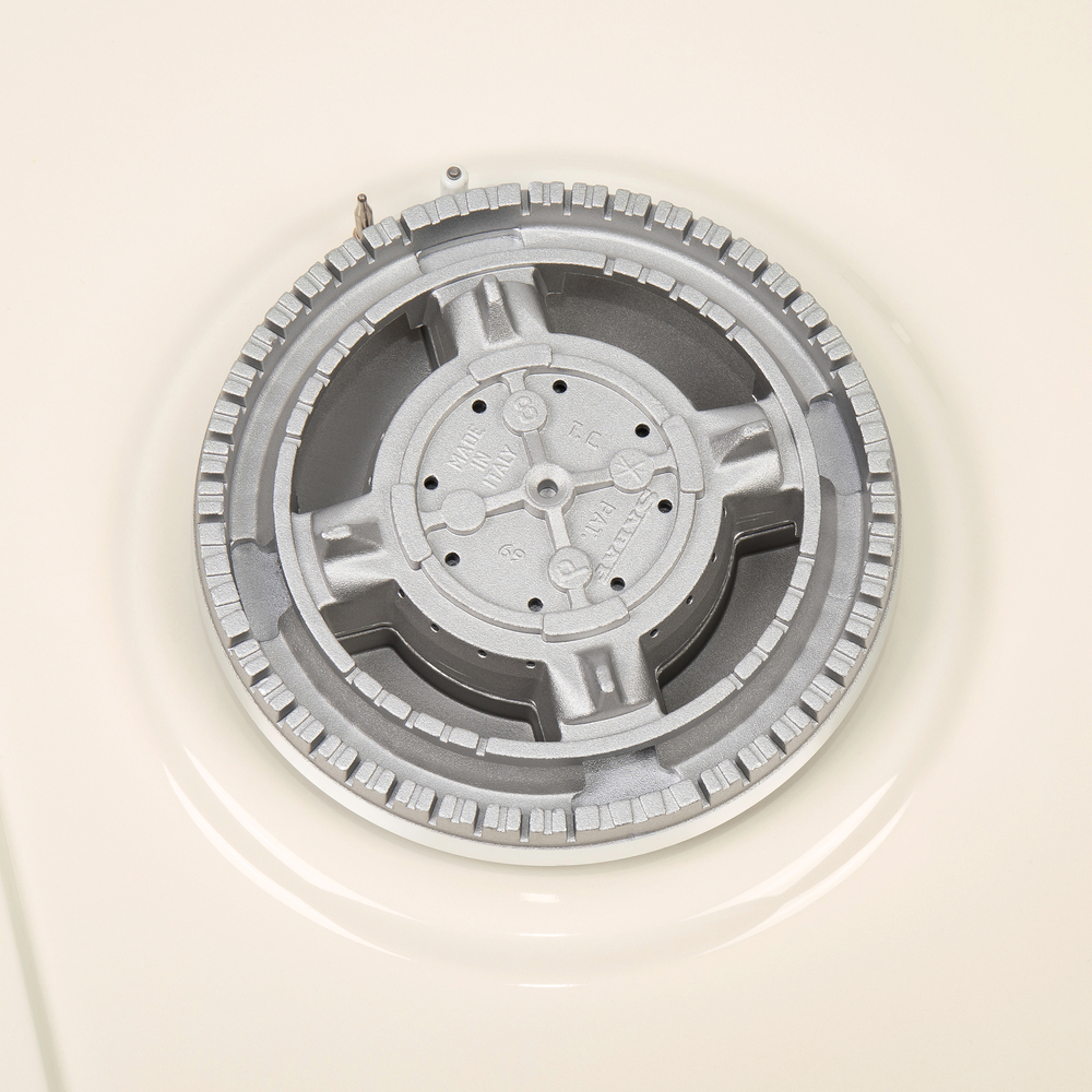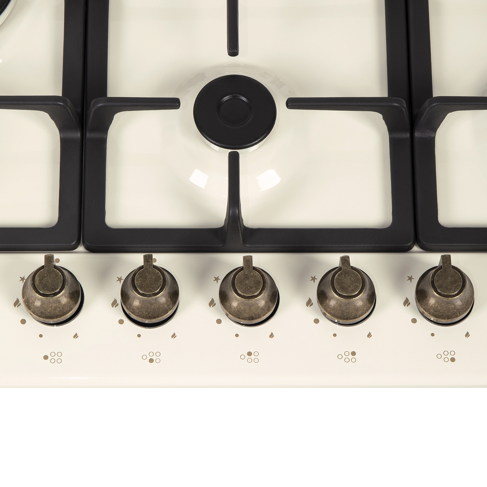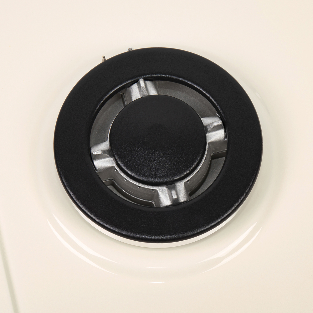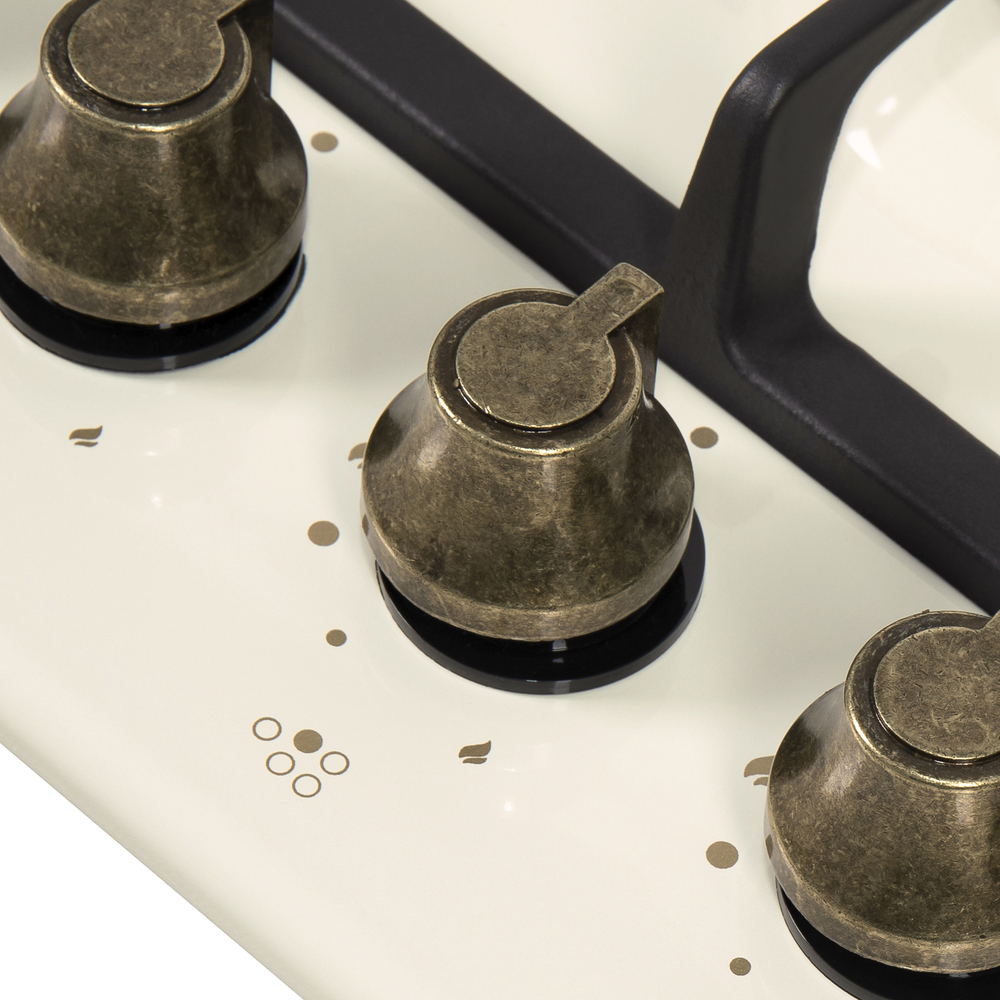 Мощная газовая встраиваемая варочная панель в ретро-стиле, выполненная из металла, покрытого термостойкой прочной эмалью.