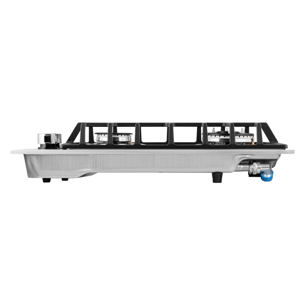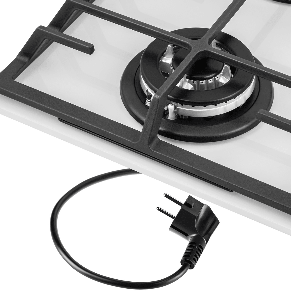 Компактная встраиваемая газовая варочная панель, выполненная из закаленного стекла.