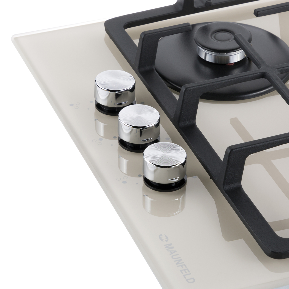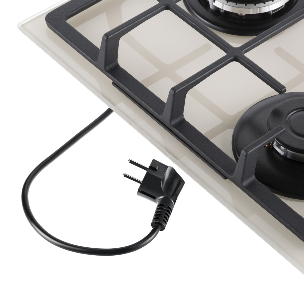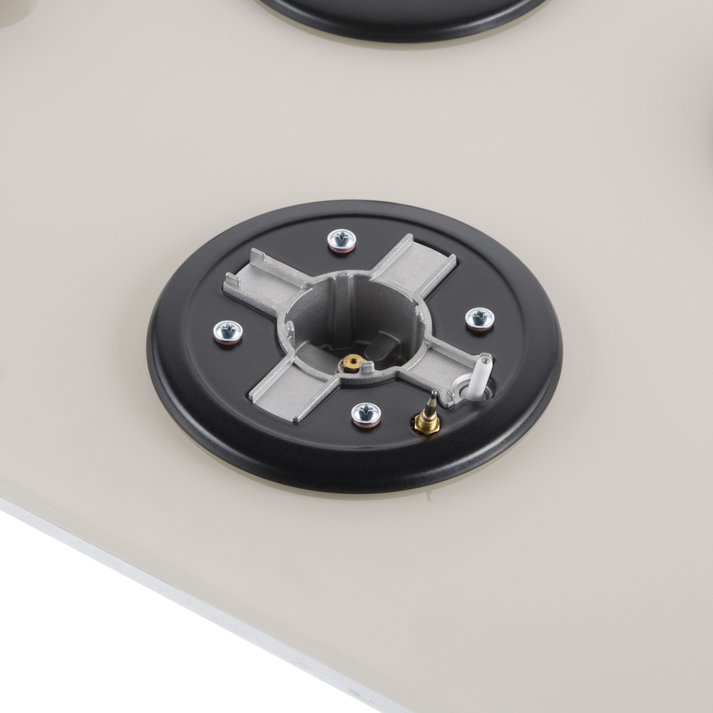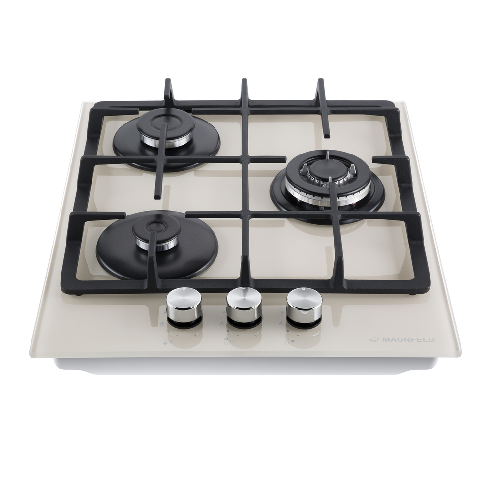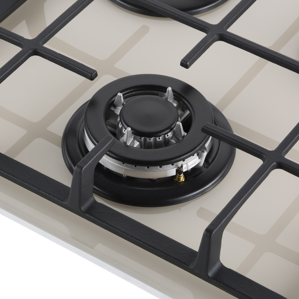 Встраиваемая газовая варочная панель с чугунными решетками. WOK-конфорка с мощностью 3000 Вт.
