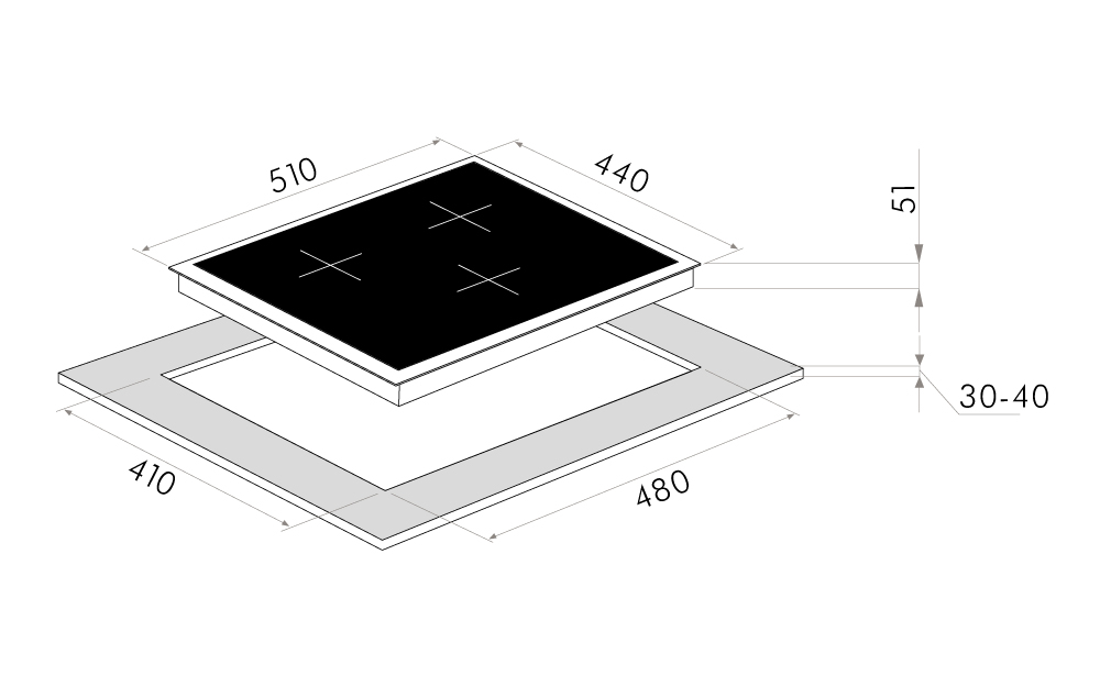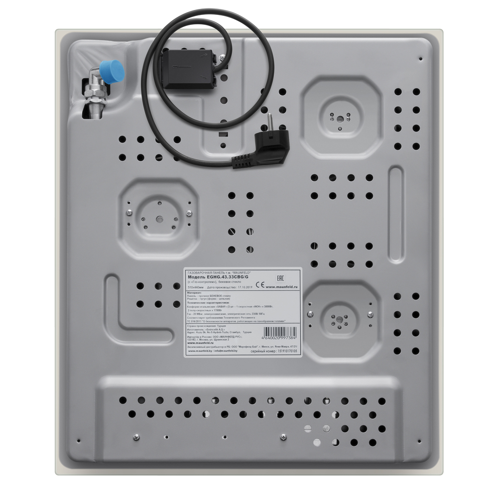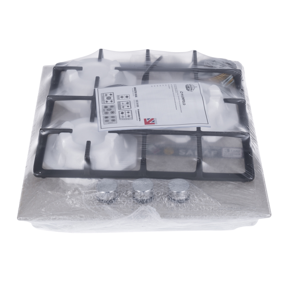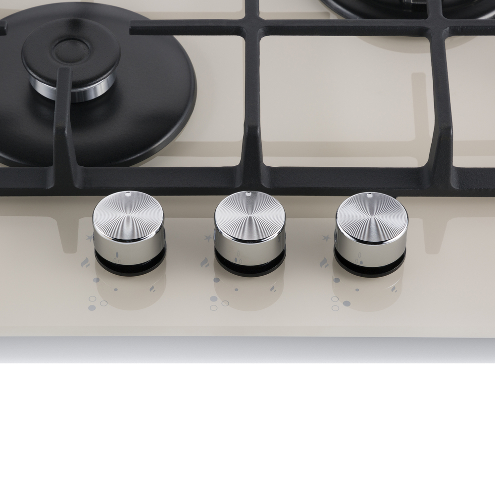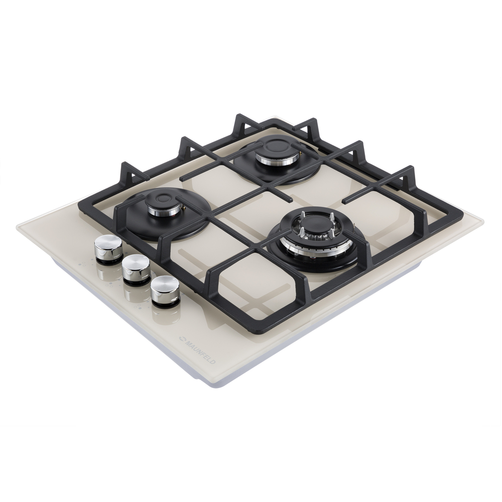 Встраиваемая газовая варочная панель с чугунными решетками. WOK-конфорка с мощностью 3000 Вт.