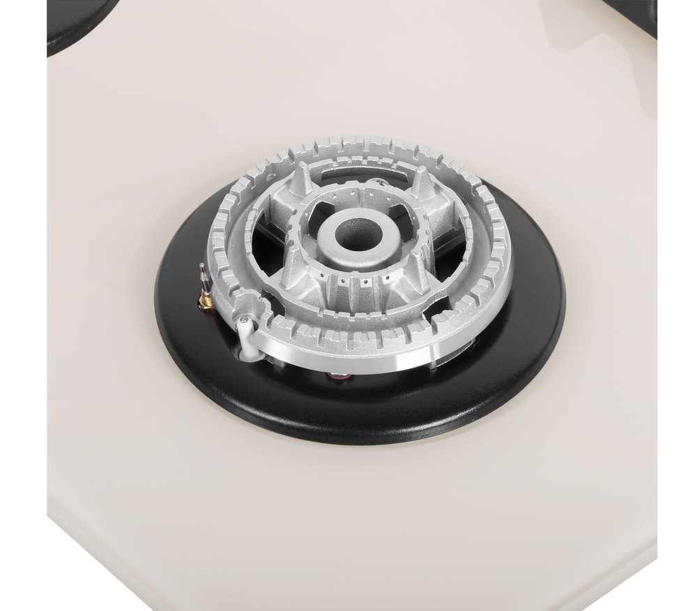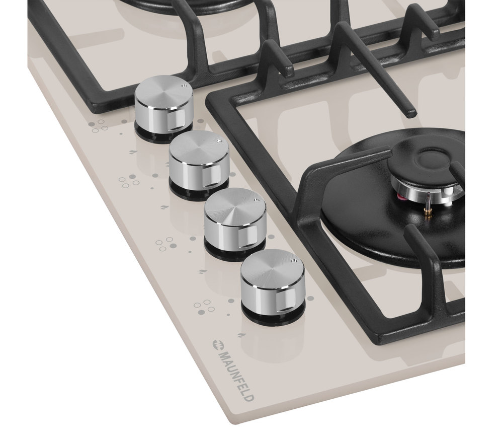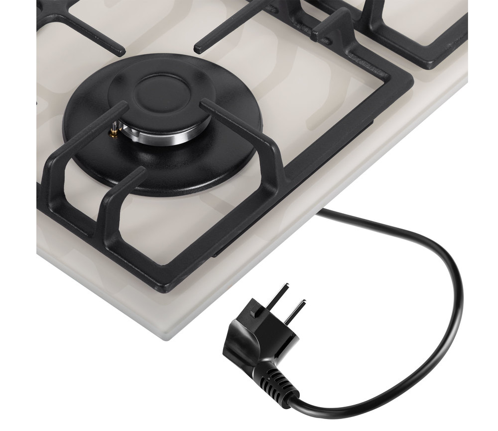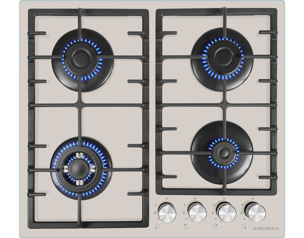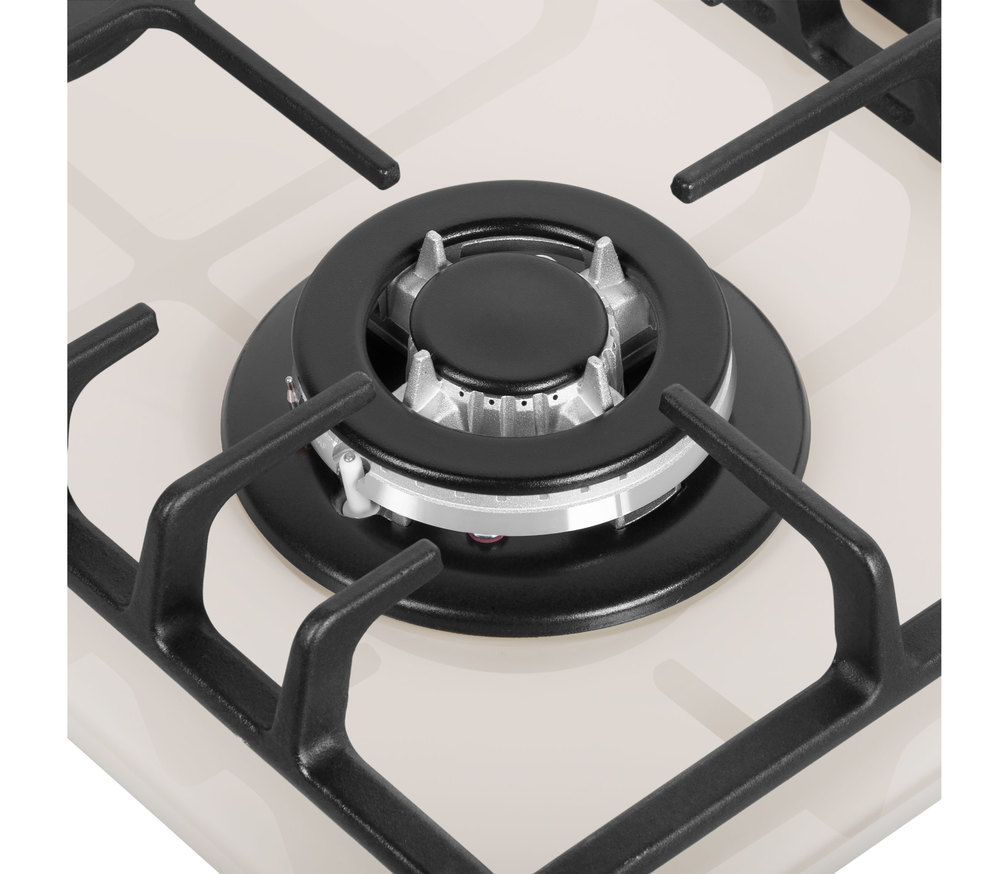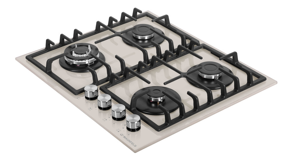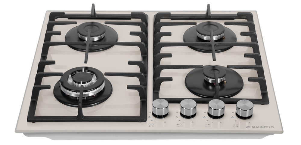Классическая встраиваемая газовая варочная панель, выполненная из закаленного стекла.