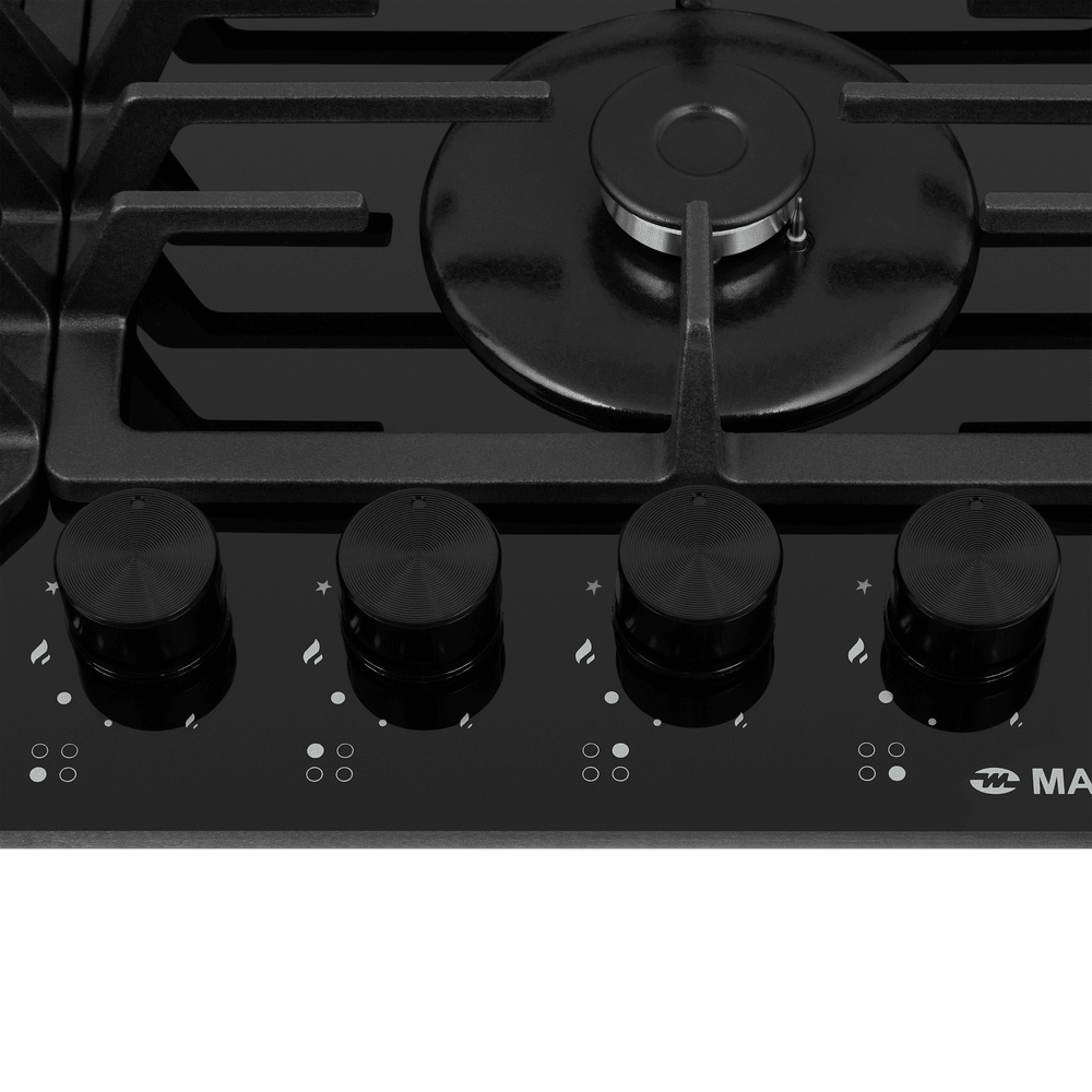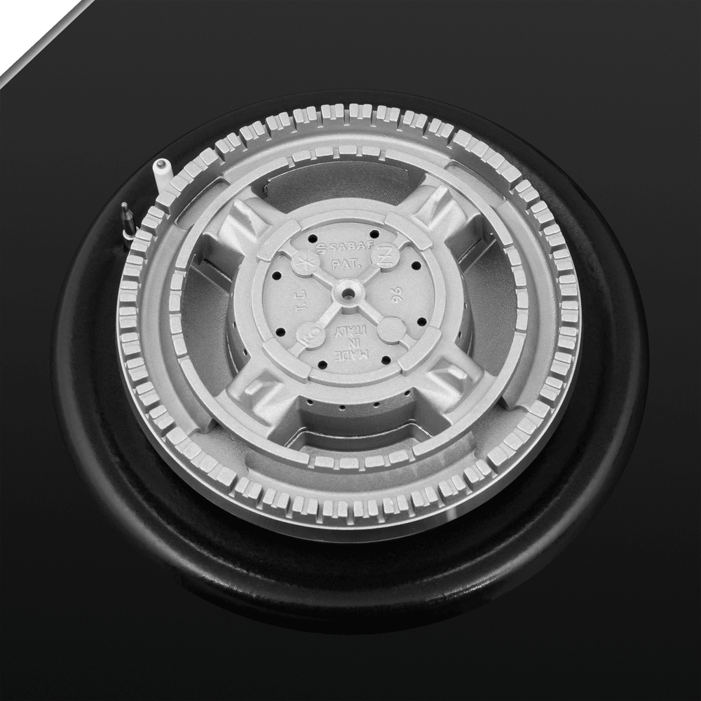 Стильная встраиваемая газовая варочная панель сделана из закаленного стекла.