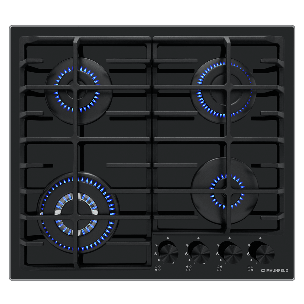 Встраиваемая газовая варочная панель с новым эргономичным дизайном чугунных решеток.
