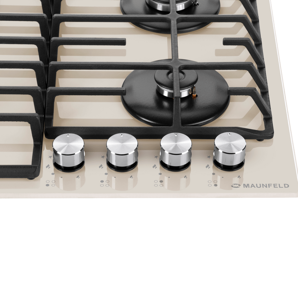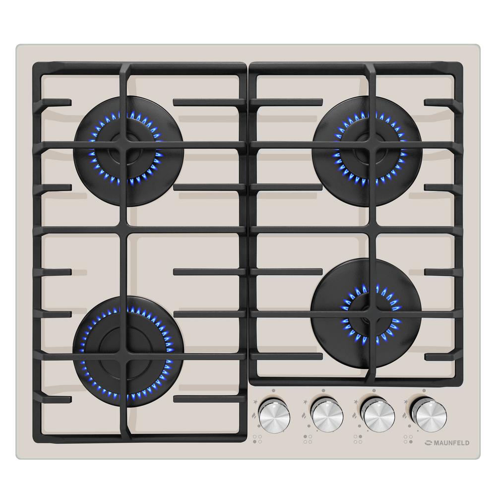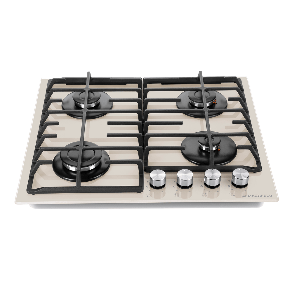 Элегантная встраиваемая газовая варочная панель из закаленного стекла с чугунными решетками нового дизайна.