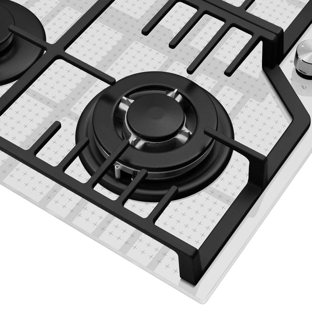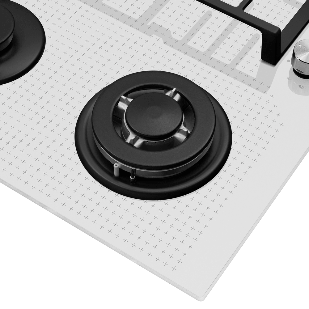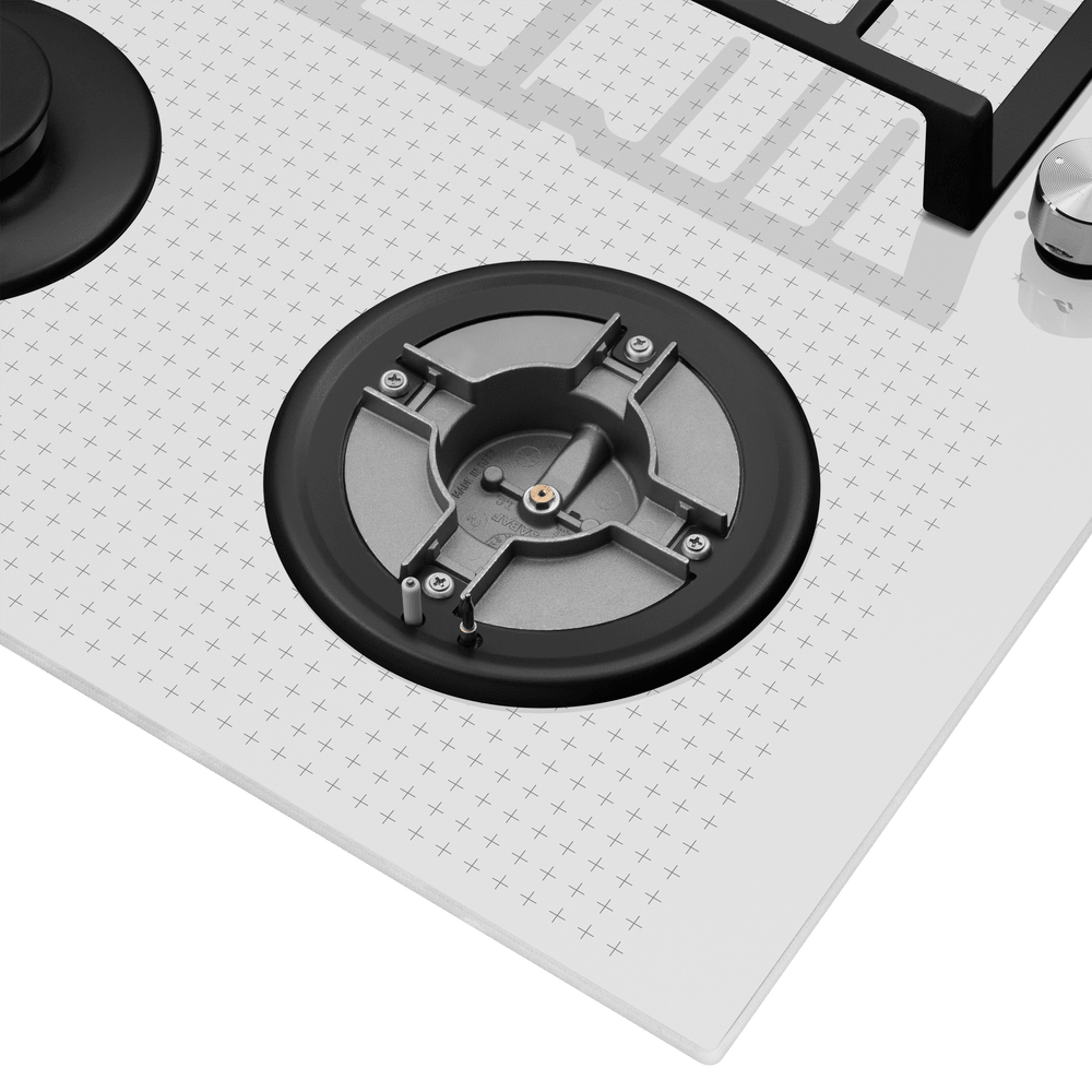 Встраиваемая газовая варочная панель с новым эргономичным дизайном чугунных решеток и WOK-конфоркой.
