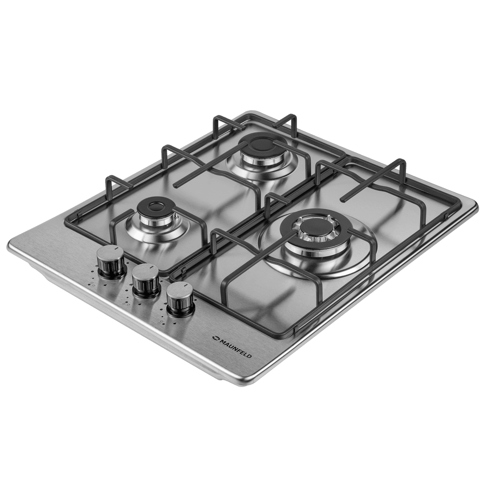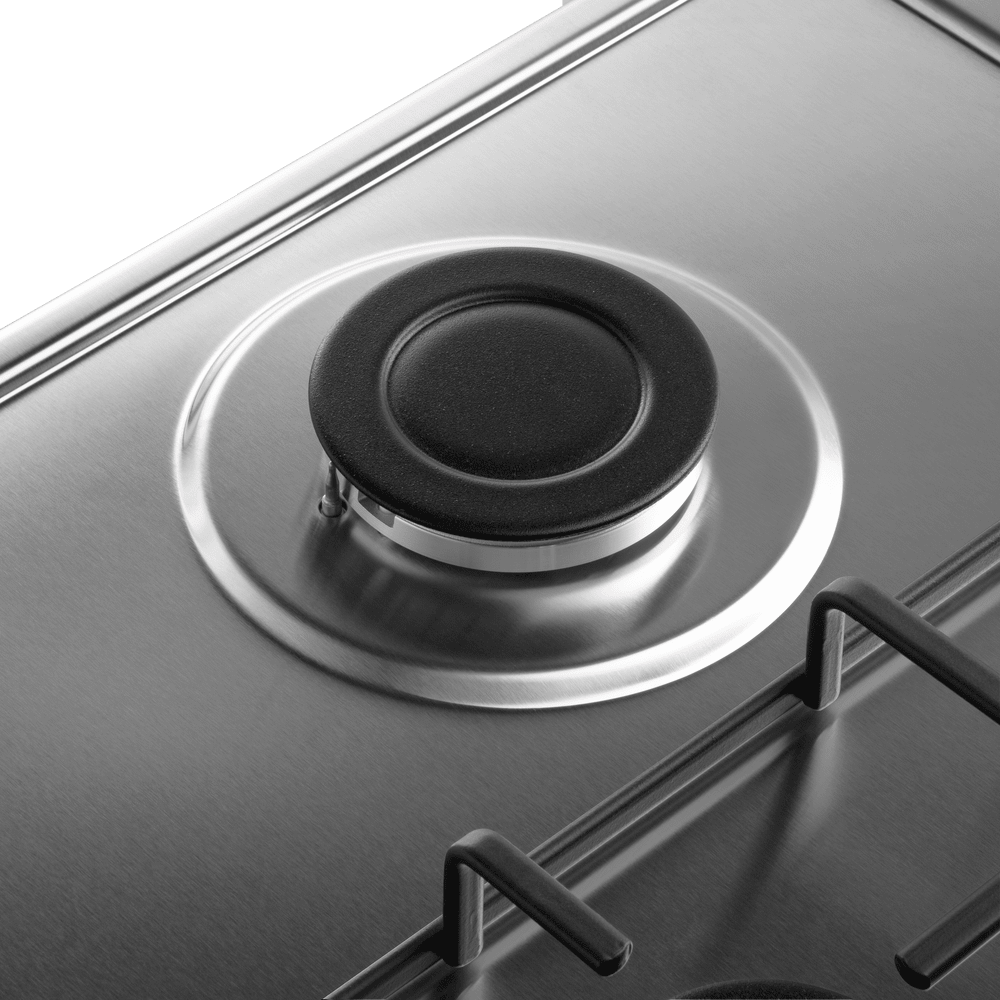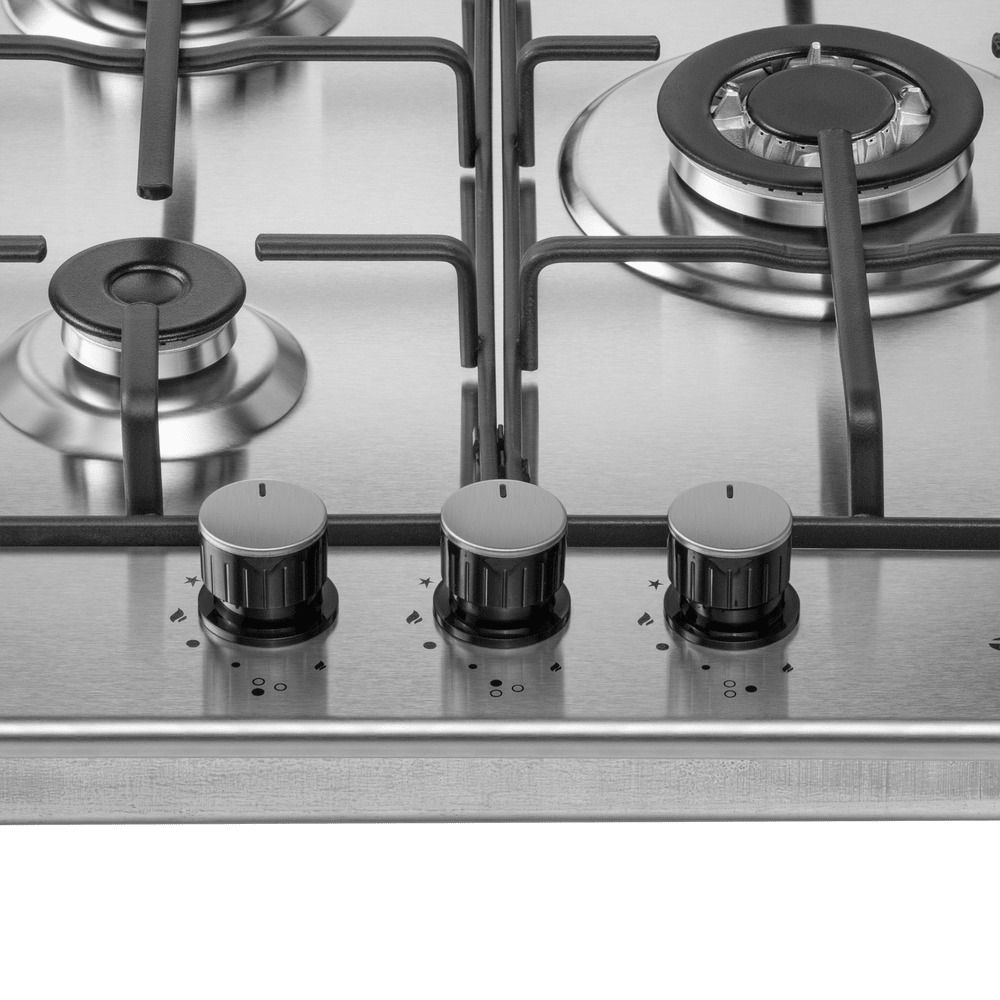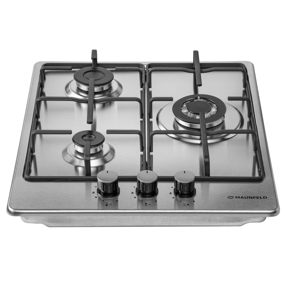 Компактная газовая варочная панель, выполненная из высококачественной нержавеющей стали.