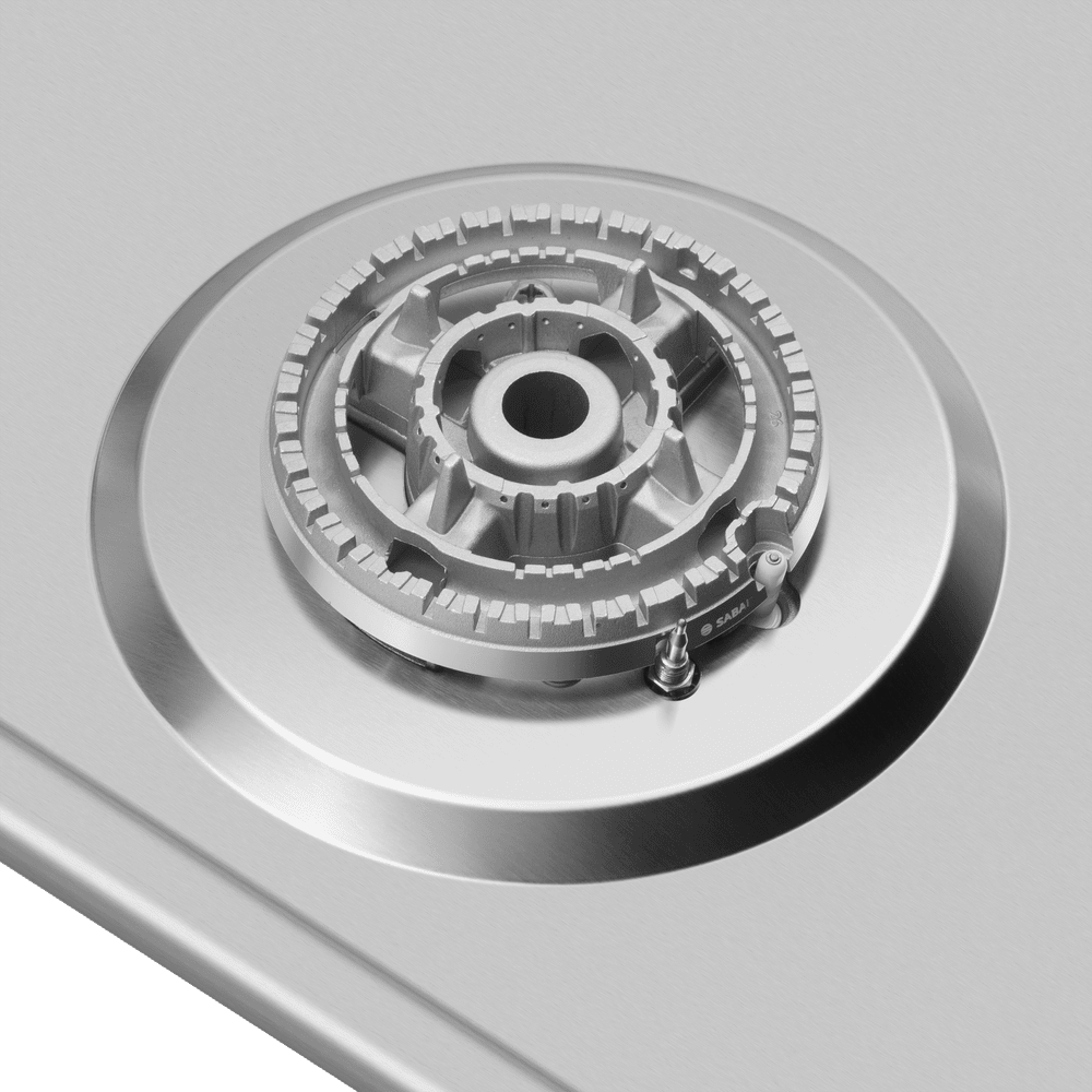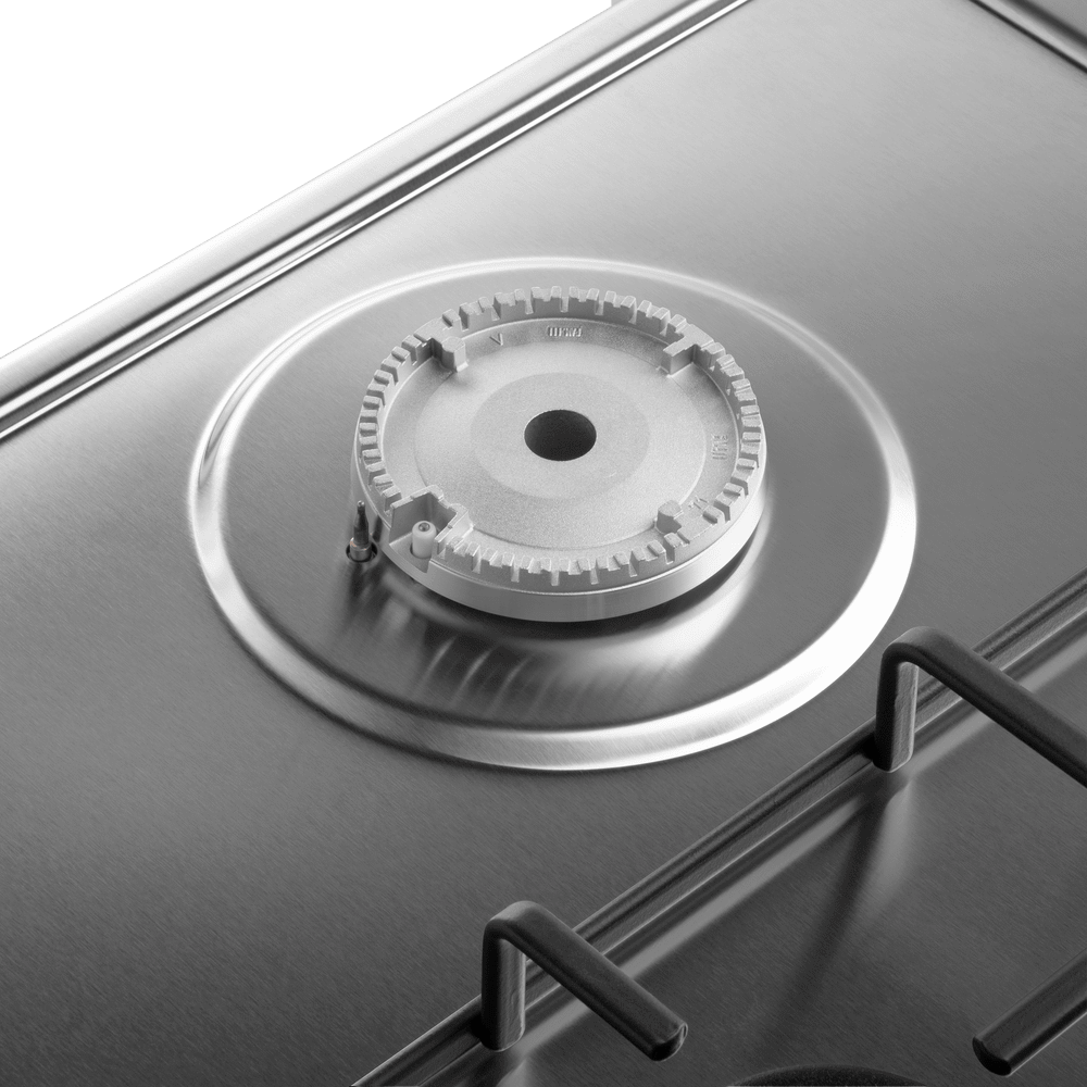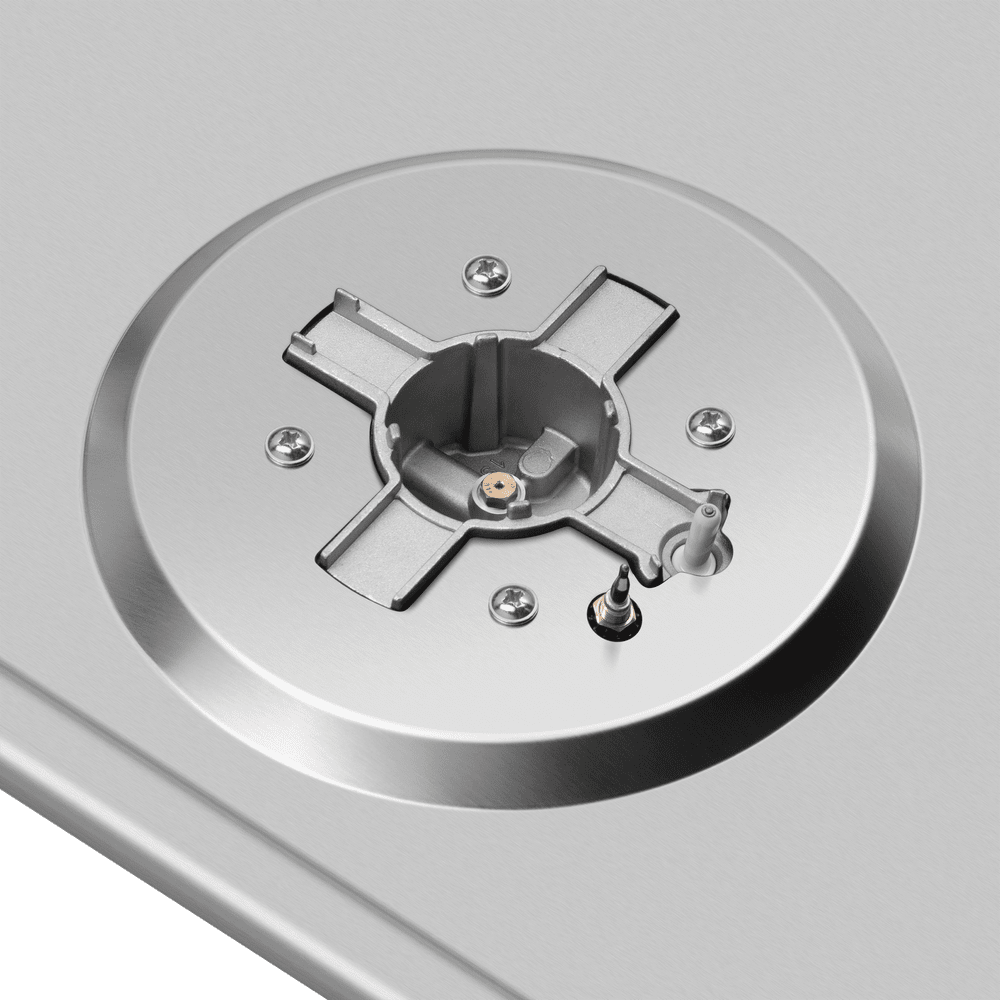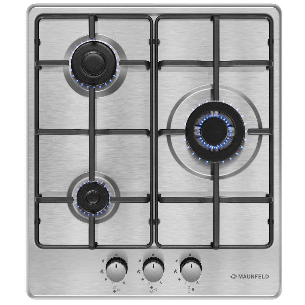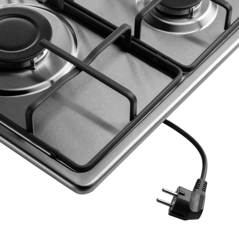 Компактная газовая варочная панель, выполненная из высококачественной нержавеющей стали.