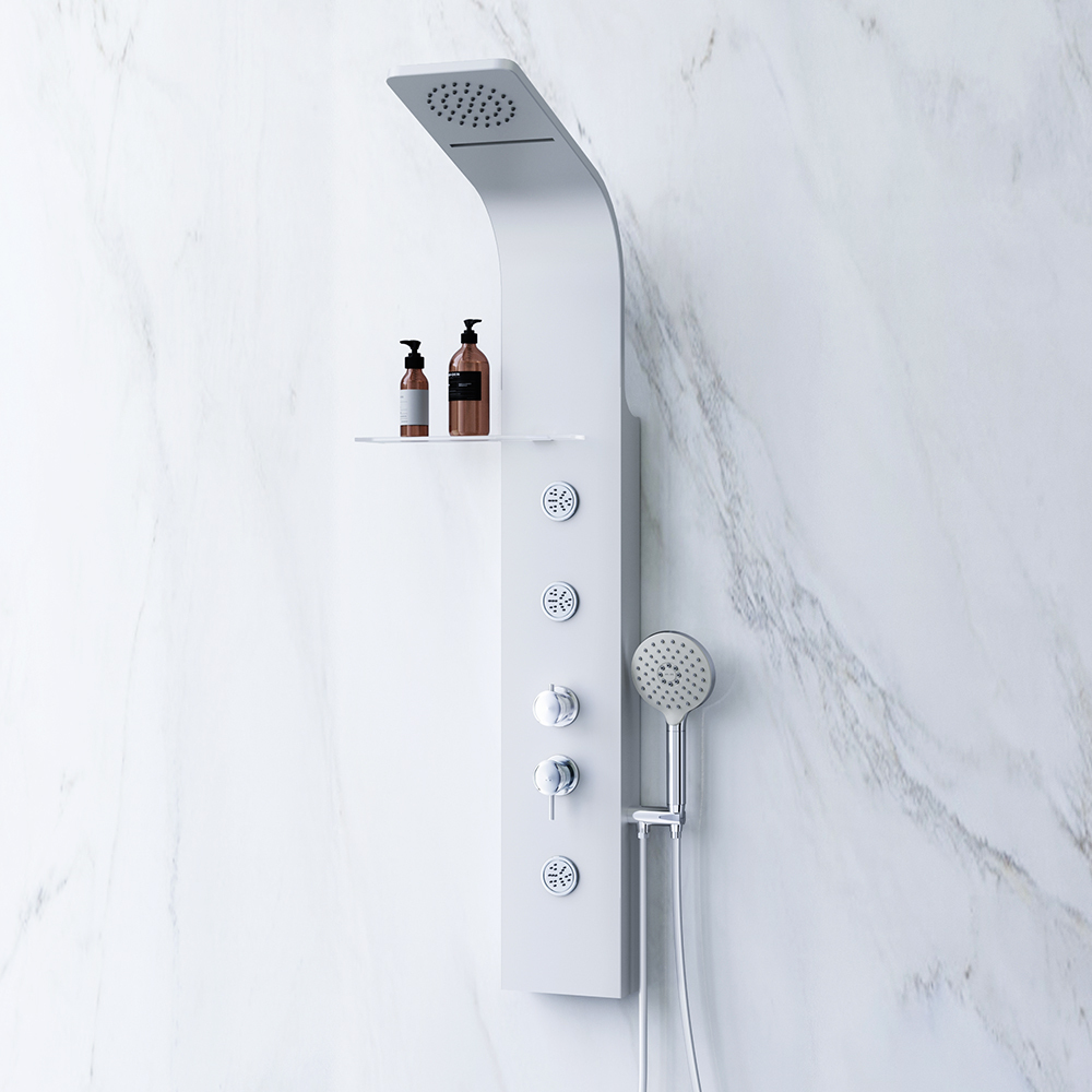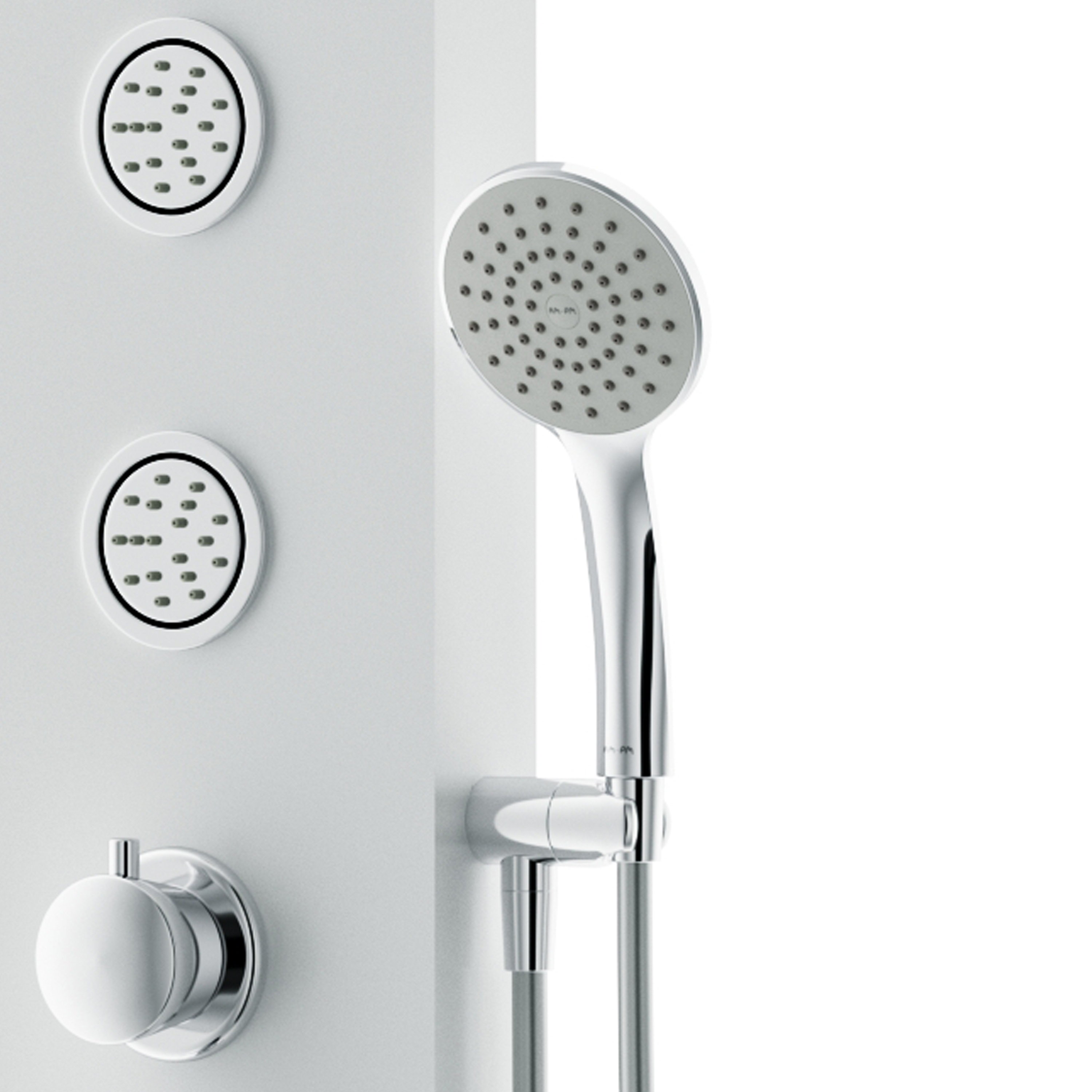 Стильная выгода: европейский дизайн в доступном сегменте. Стильная и компактная гидромассажная панель Joy подходит для установки в ванну и душевые ограждения любого типа. Продуманные детали для удобства использования: верхний душ 155 мм водопад 160 мм 3 регулируемых гидромассажных форсунки полка из оргстекла (лево/правосторонний монтаж) смеситель с переключателем режимов ручной душ 100 мм (1 режим) с держателем и шлангом 1500 мм. Корпус выполнен из нержавеющей стали. ""