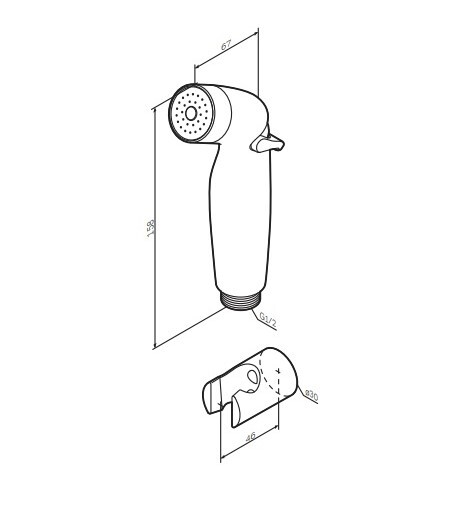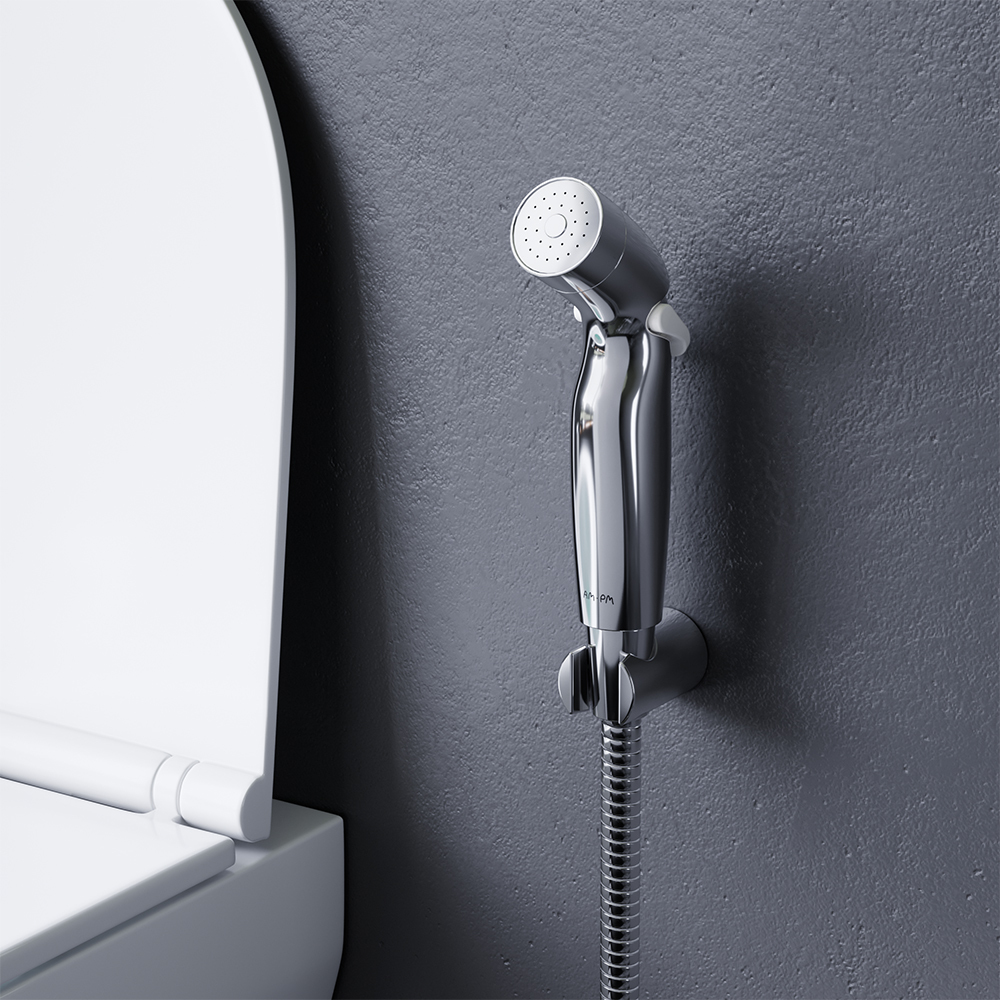 Компактный ручной душ для проведения гигиенических процедур. Держатель в комплекте отвечает за надежную фиксацию лейки и экономию пространства. Оптимальный режим напора потока воды - Spray. ""