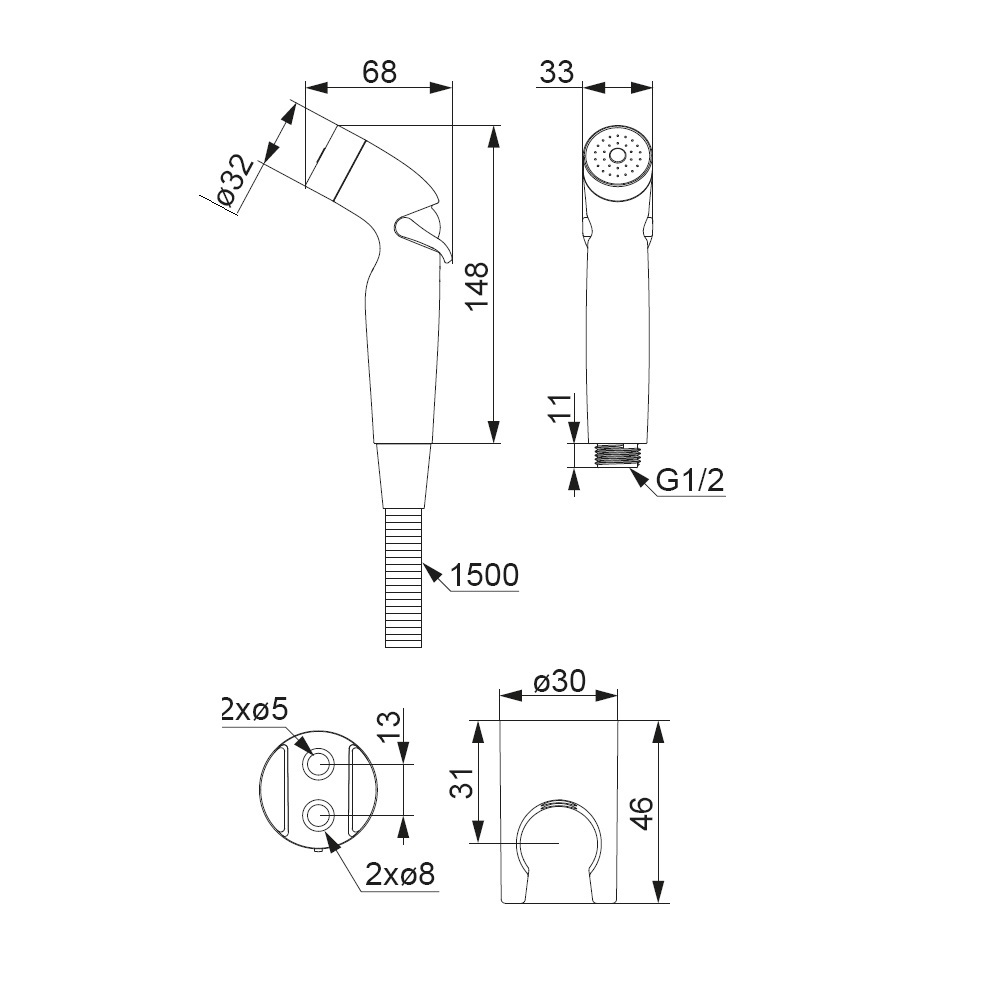 Компактный гигиенический душ с держателем в современном дизайне который впишется в любой интерьер и будет сочетаться с другими элементами сантехники. В комплект входит гигиеническая лейка шланг с защитой от перекручивания и держатель для лейки. Оптимальная длина шланга в 1500 мм будет удобна для осуществления гигиенических процедур. Гибкость конструкции предупреждает появление заломов и повреждений. ""