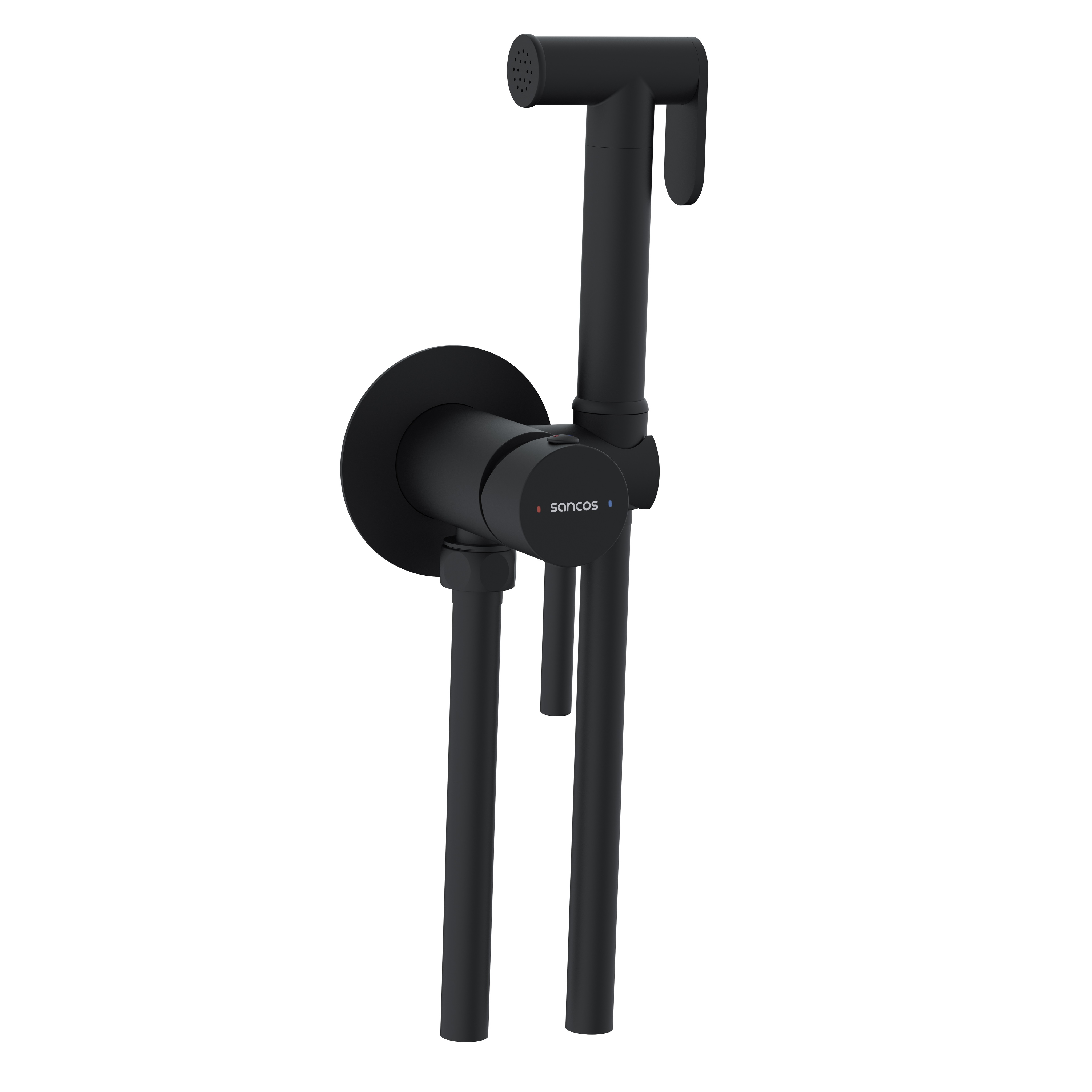 Гигиенический душ SANCOS Start со смесителем, с внутренней частью, цвет черный матовый, встраиваемый, настенный