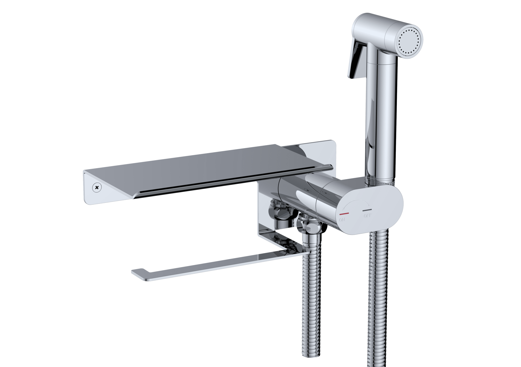 Гигиенический смеситель с прогрессивным картриджем, встраиваемый в стену, с накладной полкой и держателем туалетной бумаги или полотенца, гигиеническая лейка в комплекте - RGW SP-221, хром