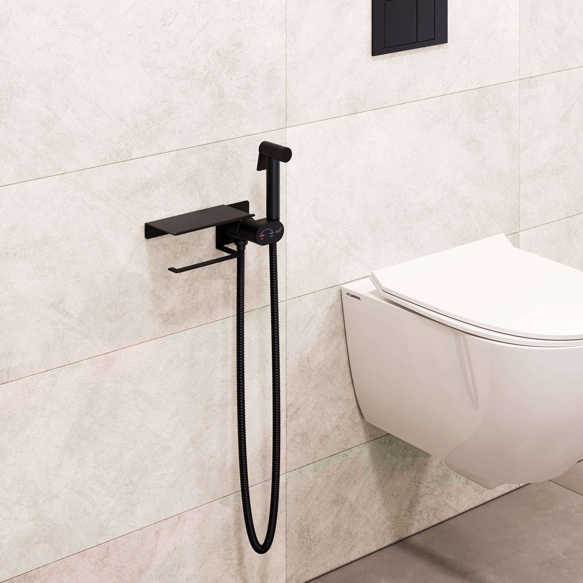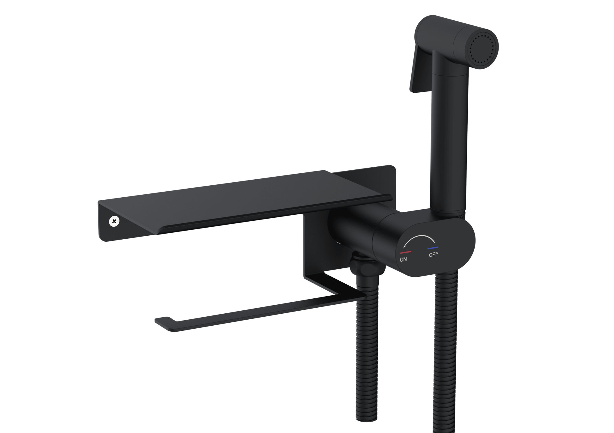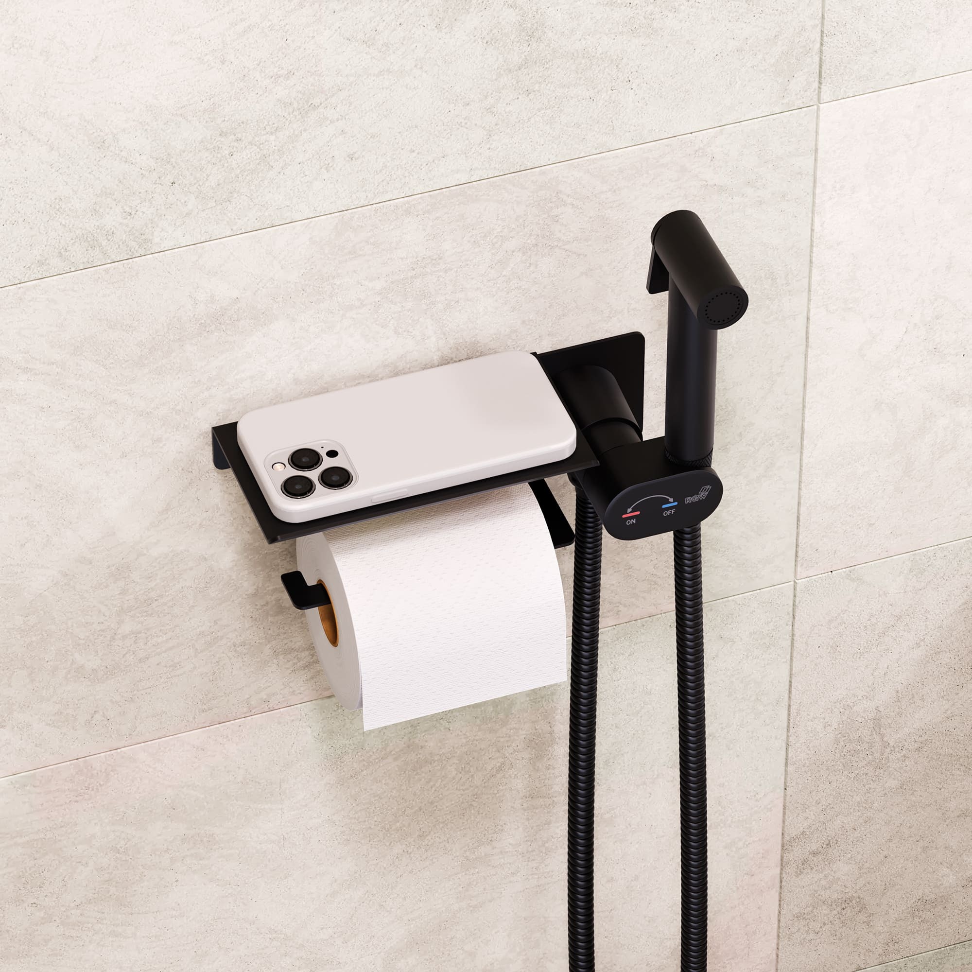 Гигиенический смеситель с прогрессивным картриджем, встраиваемый в стену, с накладной полкой и держателем туалетной бумаги или полотенца, гигиеническая лейка в комплекте - RGW SP-221B, черный