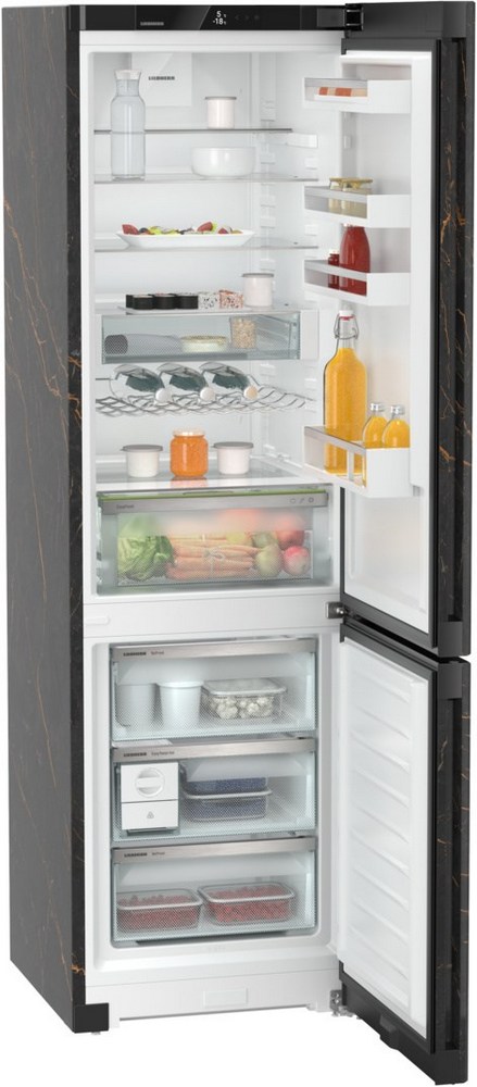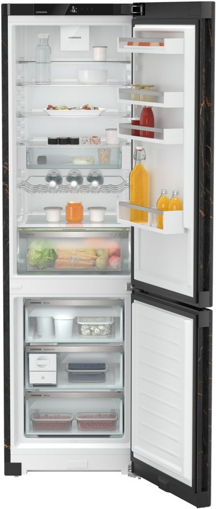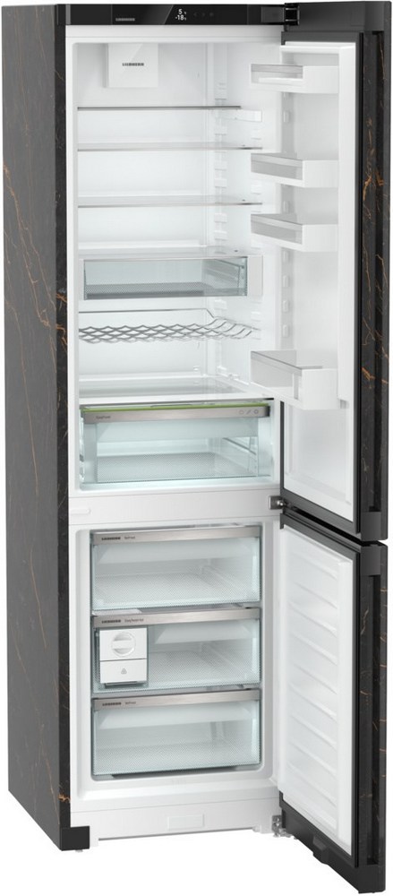 Liebherr CNbbd 5723 — современный прибор с особым дизайном в черном цвете. Устройство имеет два раздельных контура охлаждения DuoCooling, благодаря чему отсутствует воздухообмен между холодильным и морозильным отделениями. Сенсорное управление позволит без труда настроить необходимые параметры. Система No Frost избавит вас от необходимости размораживать вручную холодильник. Фильтр FreshAir с активированным углём будет поддерживать свежий воздух во внутреннем пространстве.