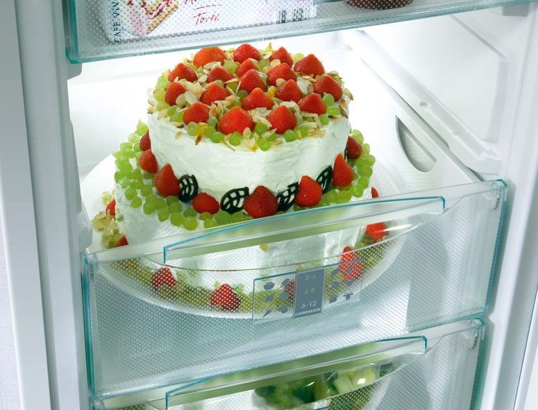 Морозильный отсек состоит из трех ящиков и лотка для приготовления кубиков льда, расположен снизу и имеет рабочий объем 87 л. Система охлаждения и размораживания No Frost. Режим SuperFrost с автоматическим отключением через 65 часов позволяет правильно подготовить продукты. Мощность замораживания — 11 кг/сутки, данный показатель является стандартным для этой модели. VarioSpace отвечает за удобное расположение запасов. Опция FrostControl срабатывает при длительном отключении света, программа запоминает максимальную температуру и высвечивает ее на дисплее, это позволит вам понять можно ли употреблять в пищу еду, находящуюся внутри.